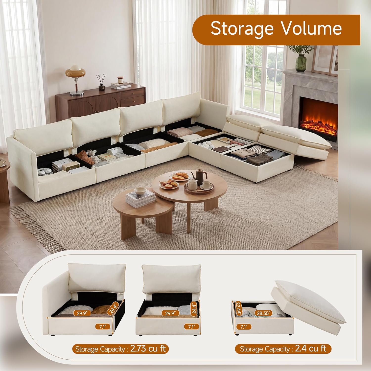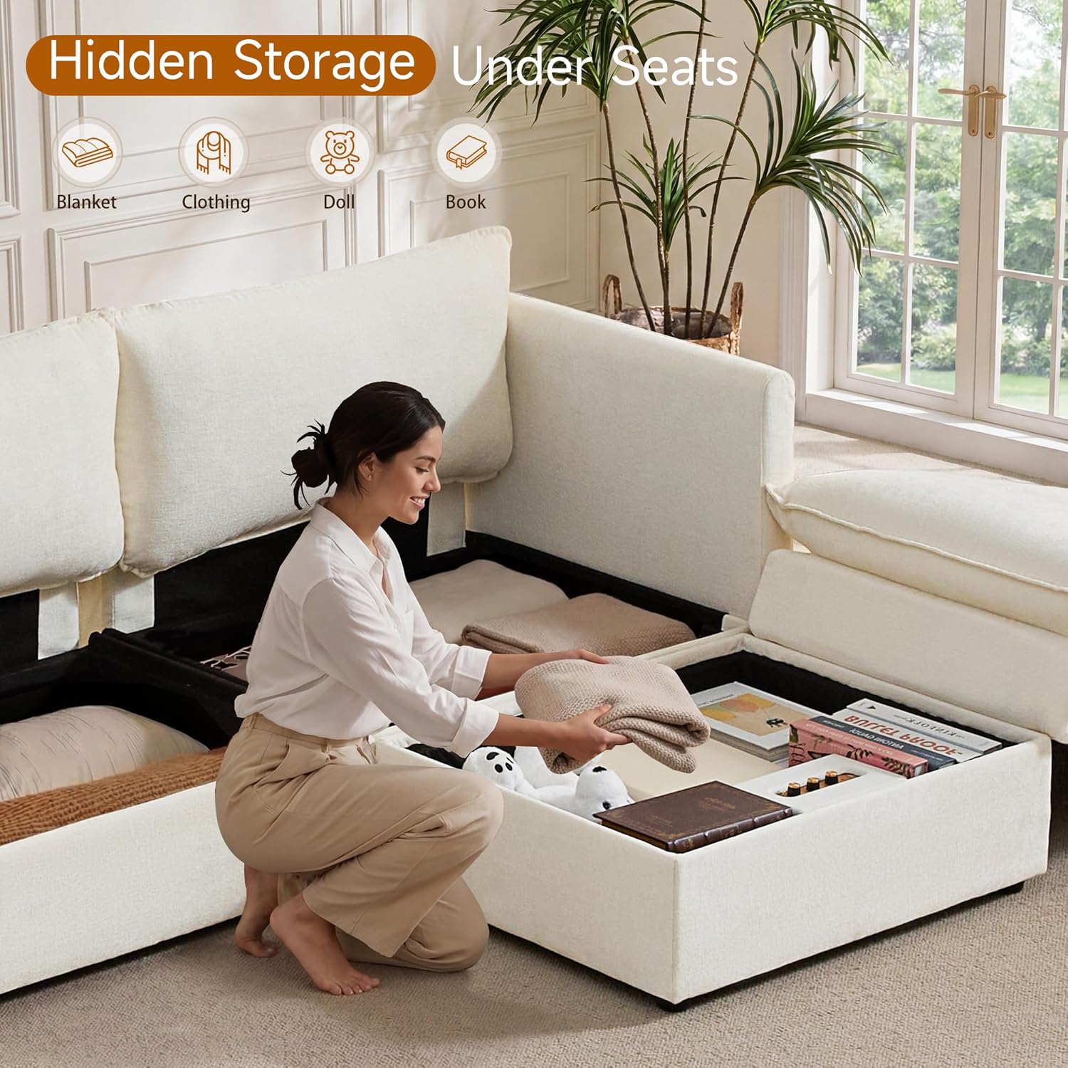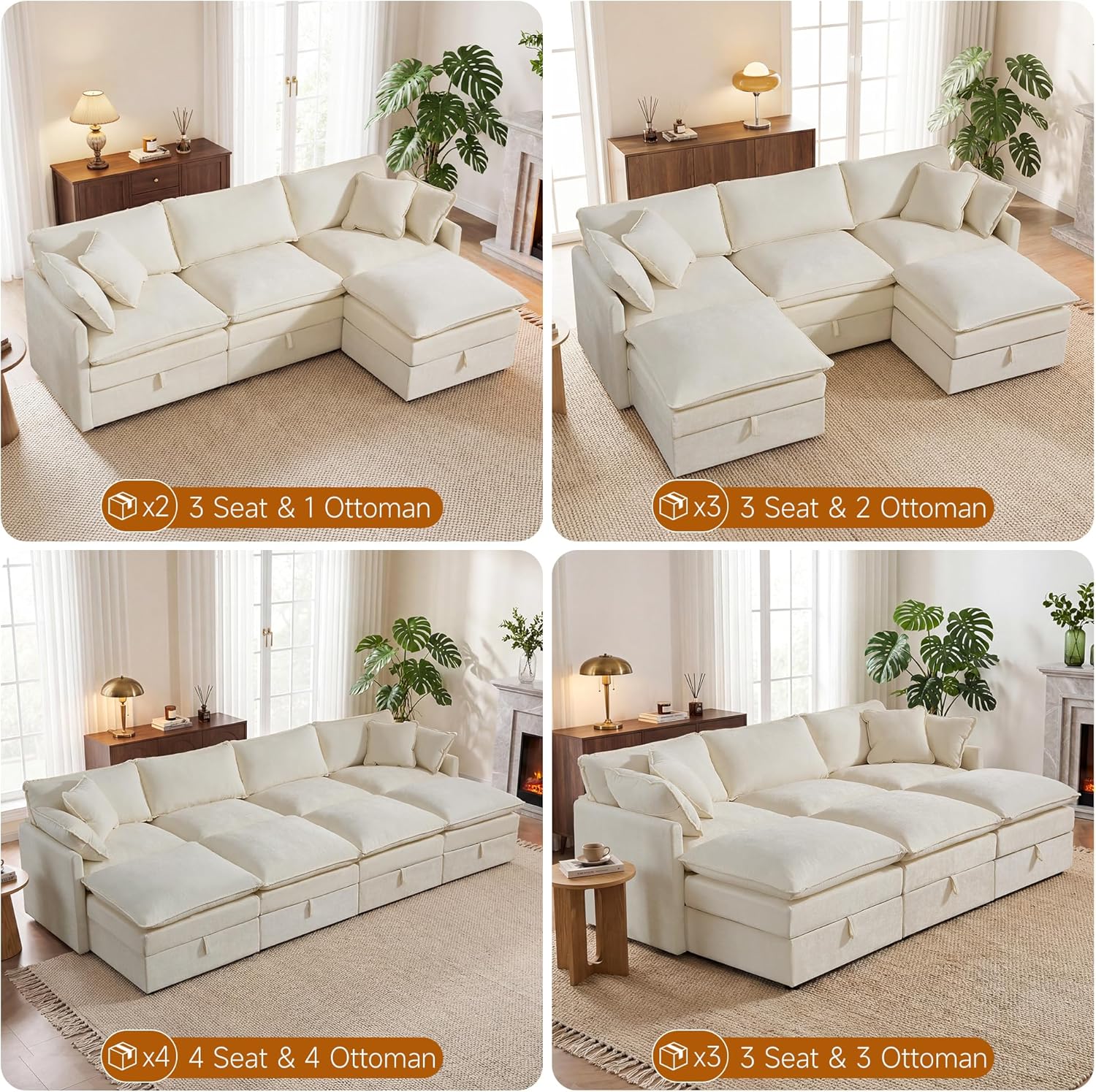 Design Your Perfect Layout: Embrace flexibility with this modular sectional sofa. Arrange the pieces to suit your space and needs, and enjoy the added bonus of a practical Fabric Sectional with Storage, expertly crafted in soft, durable chenille