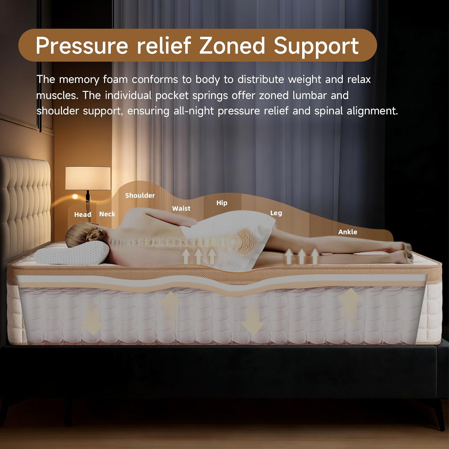 Strong Edge Support: One of the standout features of our mattress queen size is reinforced edge springs, which prevent sagging and create a stable, fully usable sleep surface from edge to edge.Sleep or sit near the sides with confidenceno fear of rolling off. This robust perimeter support works in harmony with a spine-aligning spring system that reduces pressure points and promotes healthy sleep posture for a more comfortable rest.