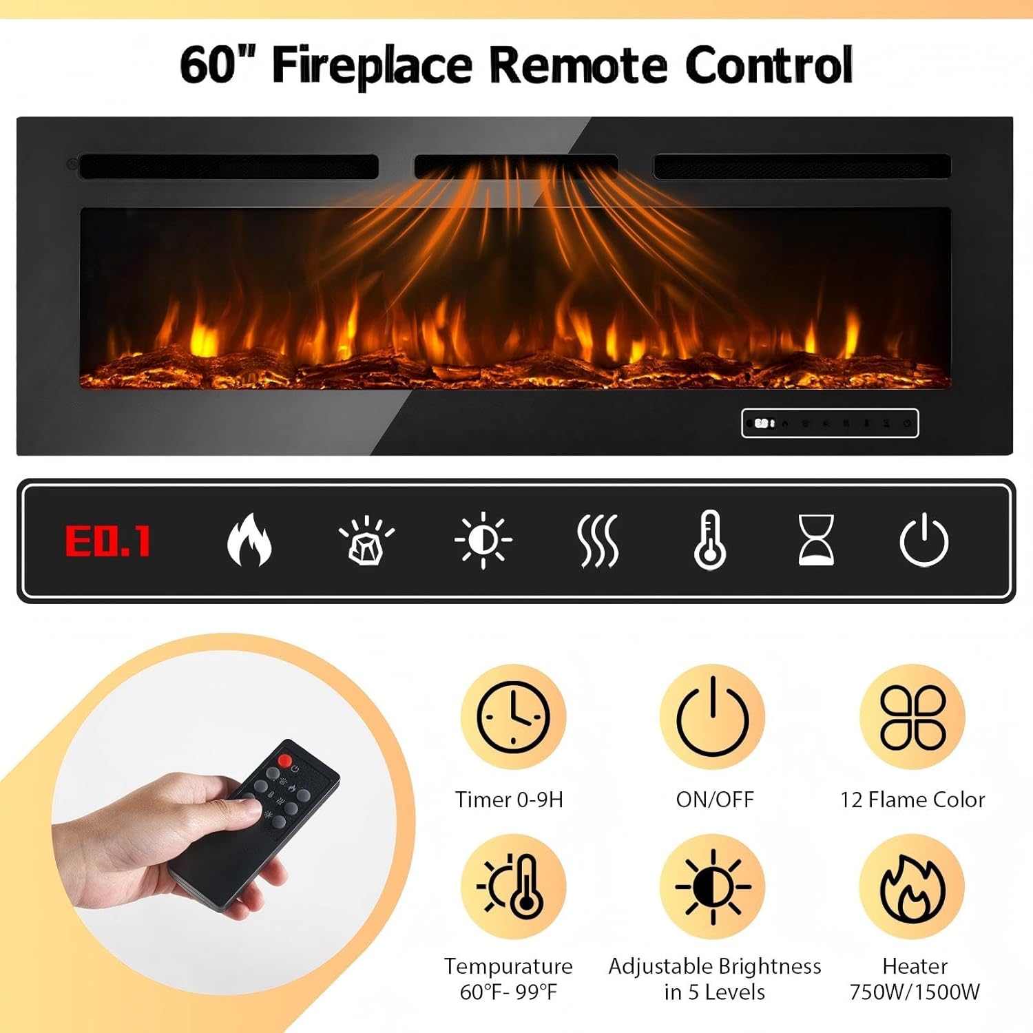 Immersive & Customizable Ambiance: Enjoy the cozy warmth and captivating visual display of lifelike 3D flames and glowing logswithout the mess or maintenance of a real fire. Personalize your space with 12 vibrant LED color options and 5 adjustable flame brightness levels. Set your perfect temperature (62F82F) and program the auto-shutdown timer for up to 9 hours of worry-free operation