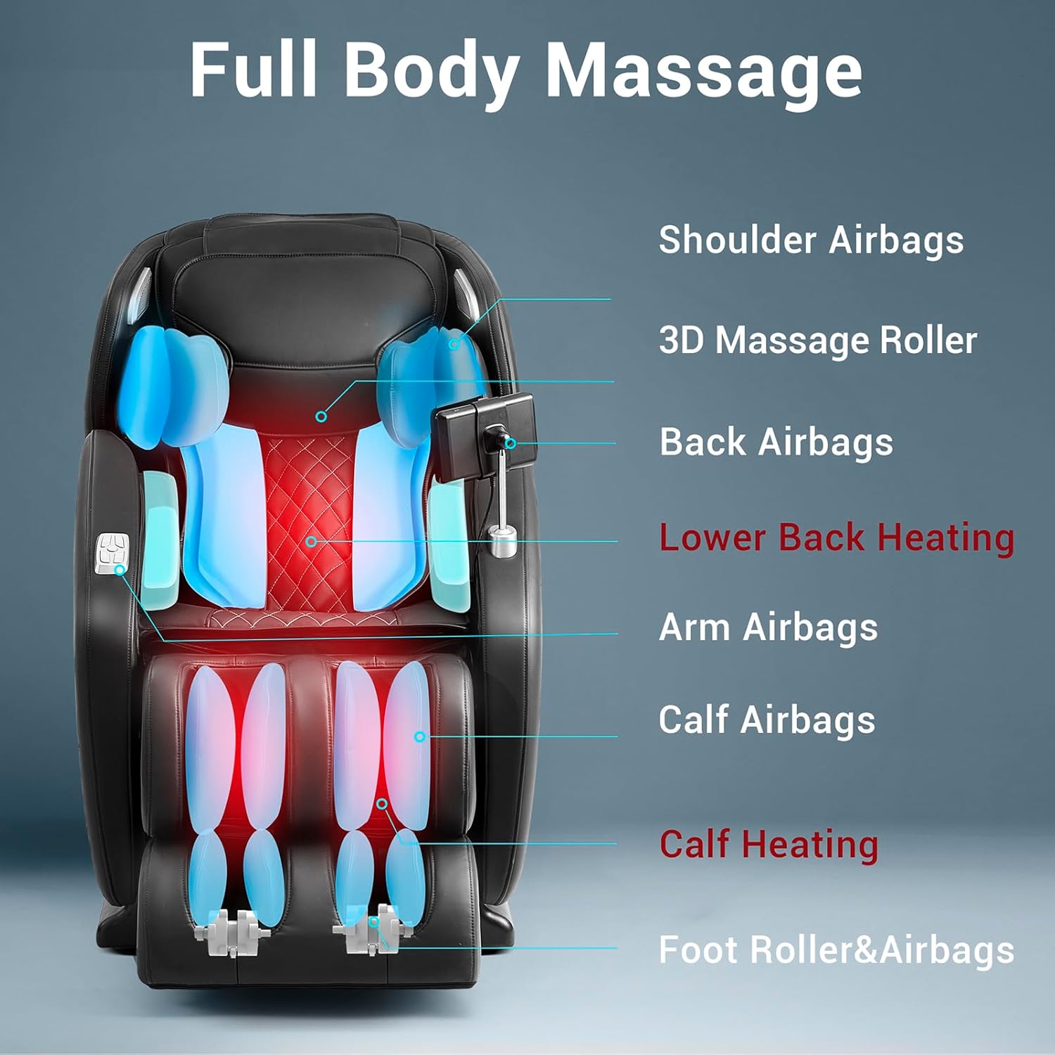 Full-Body Air Compression: Enjoy a full body massage with airbags that target your shoulders, arms, back, waist, calves, and feet