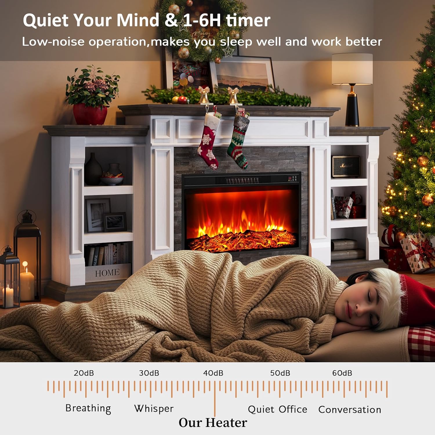 30" Electric FireplaceEnjoy the charming 3D realistic flames, the fireplace is dust-free and makes no noise. It provides a constant flow of heat and heats up to 400 square feet. Adjustable brightness and temperature, timing function ensures a good sleep.