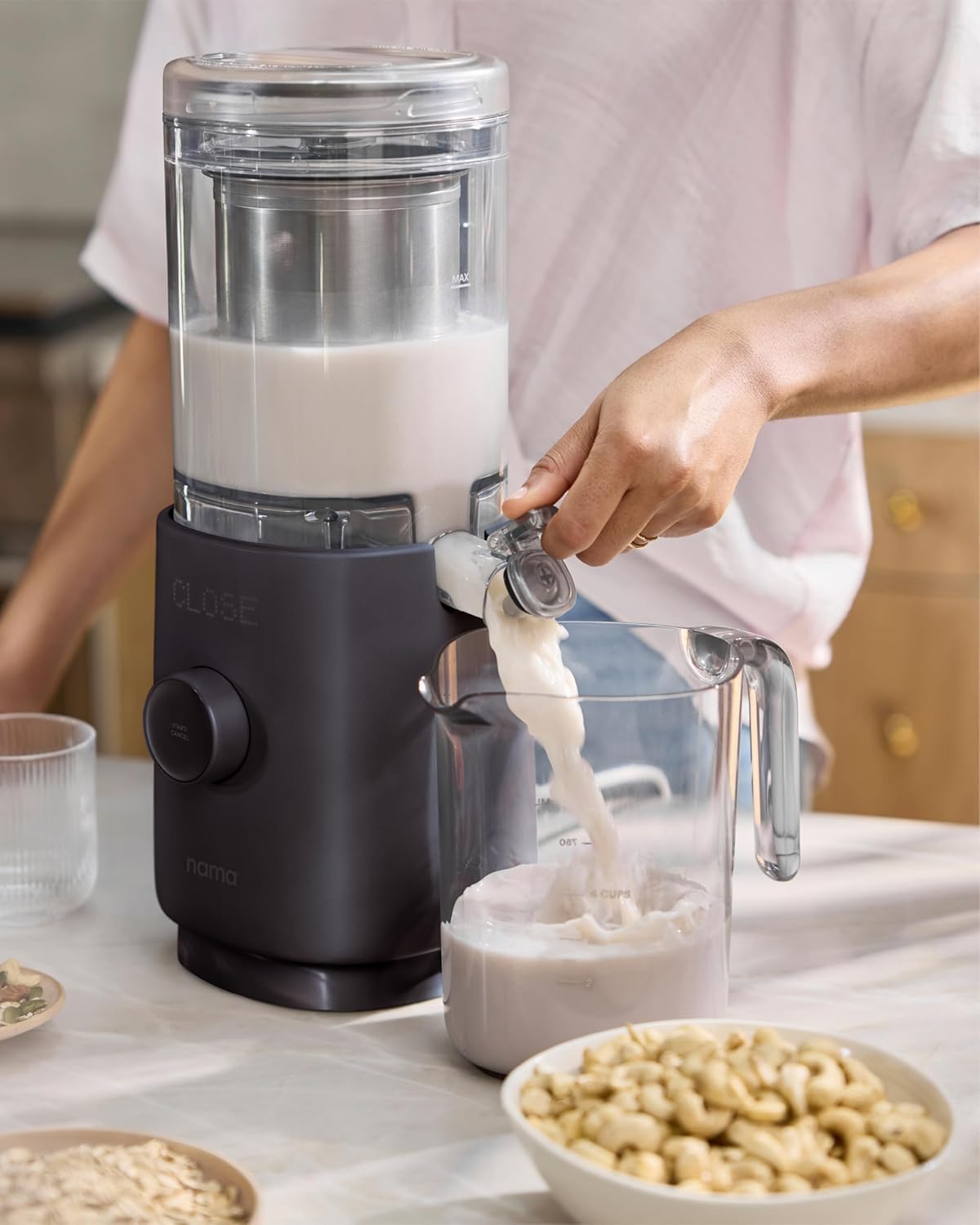 INNOVATIVE TECHNOLOGY: Patent-pending technology creates creamy milk by blending & gently separating solids. Enjoy rich & smooth milk with dry pulp perfect for reuse in recipes to reduce waste. Our versatile nut milk maker machine delivers exceptional flavor.