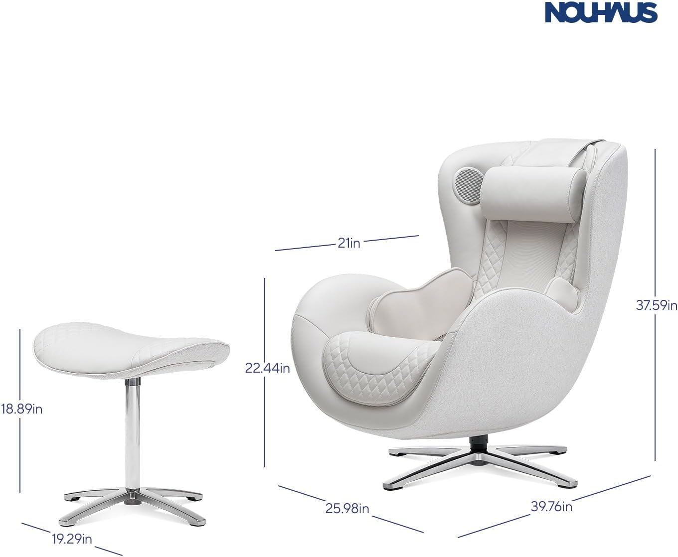 • Classic Massage Chair with Ottoman. White Leather Lounge Chair, with Percussive & Shiatsu Chair Massager, Bluetooth Speaker and Recliner. Cozy Bedroom Chair with Spot and Full Body Massager