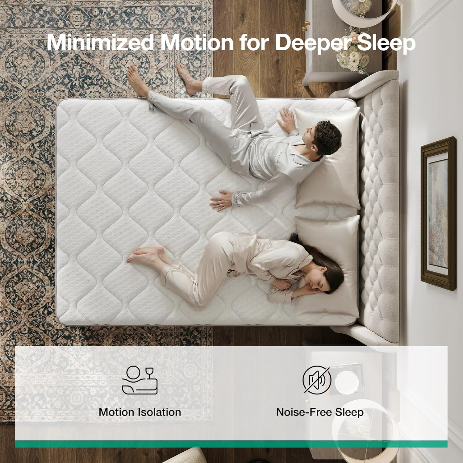 Peaceful night without disturbance: Pocket coils move independently, absorbing movement and preventing it from spreading across the king hybrid mattress. The combination of foam and springs provides both support and motion absorption, ensuring that you and your partner can rest peacefully without interruption. Enjoy an undisturbed night's sleep with the 14 inch king mattress.