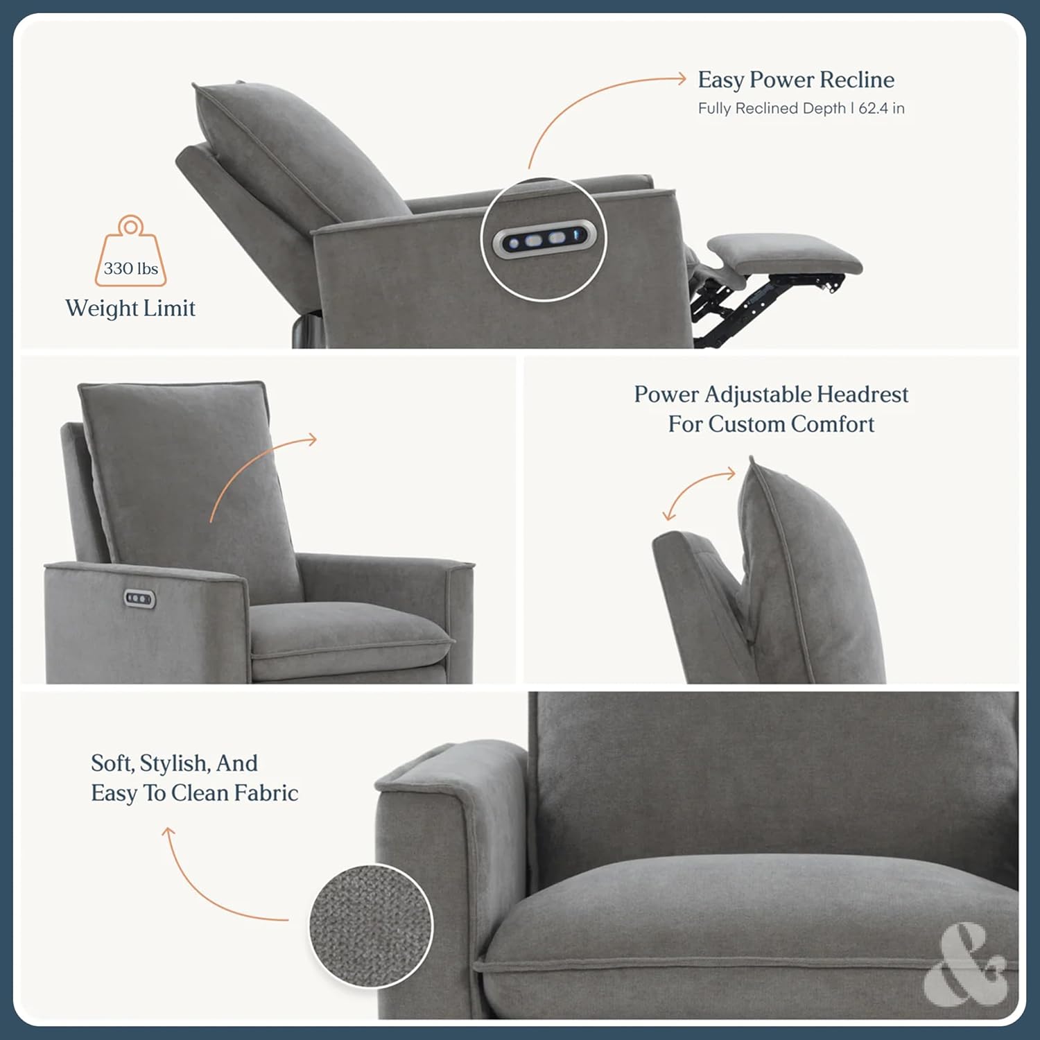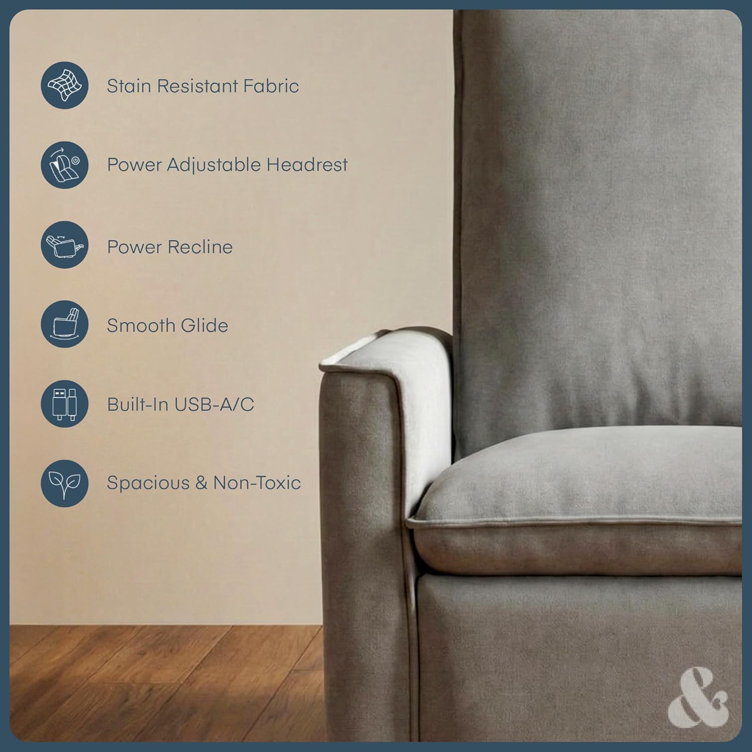 Montauk Power Glider Recliner Premium Nursery Recliner Chair with USBA/C, Adjustable Headrest & Gentle Glide, StainResistant Upholstery, Comfortable & SpaceSmart, Gray