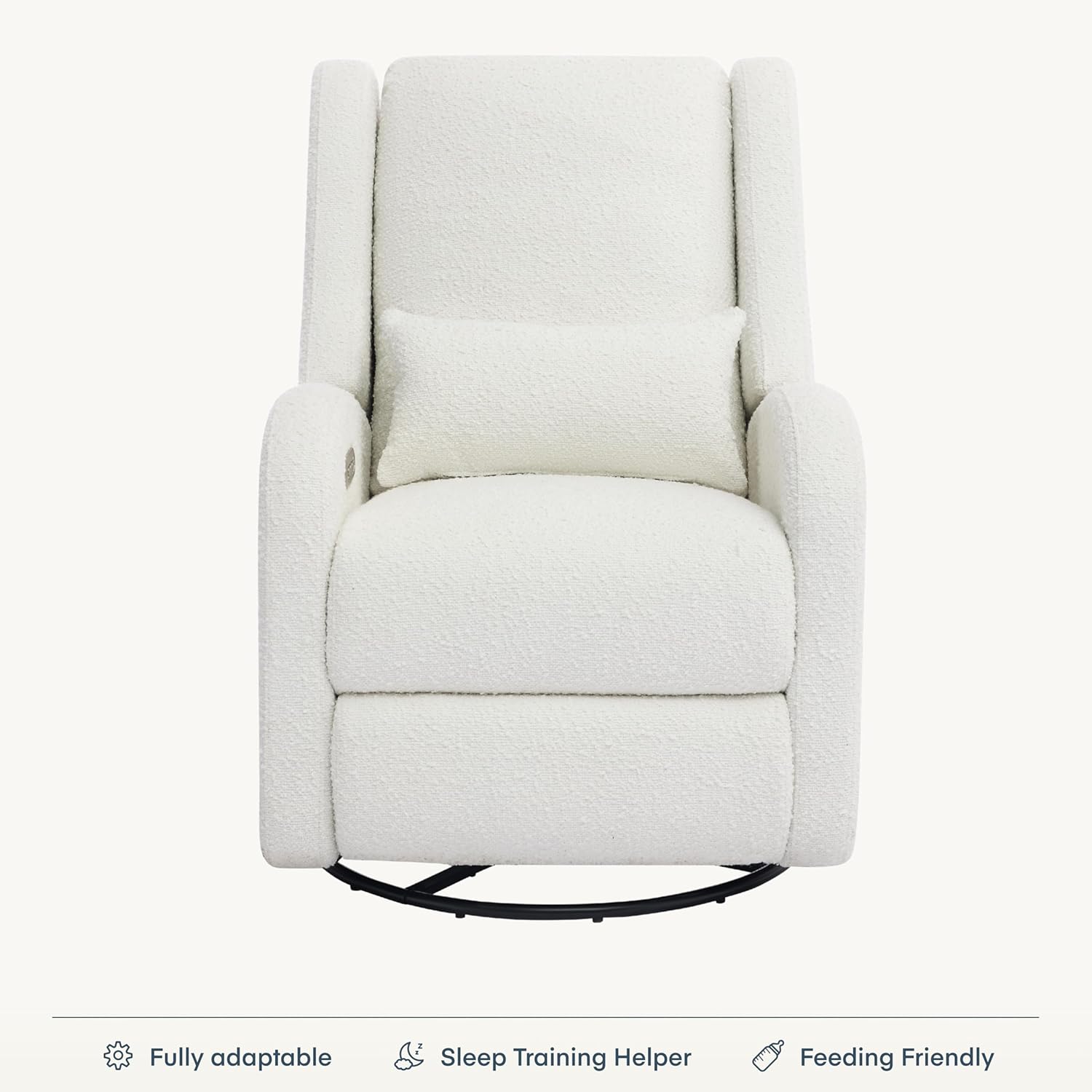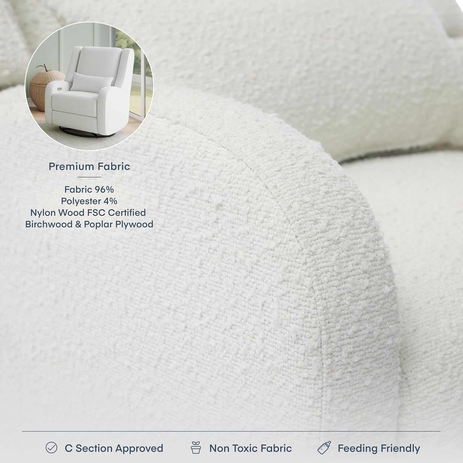 Ergonomic Support, Thoughtfully Designed A supportive seat and cushioned armrests provide lasting comfort through every late-night feed and midday snuggle.