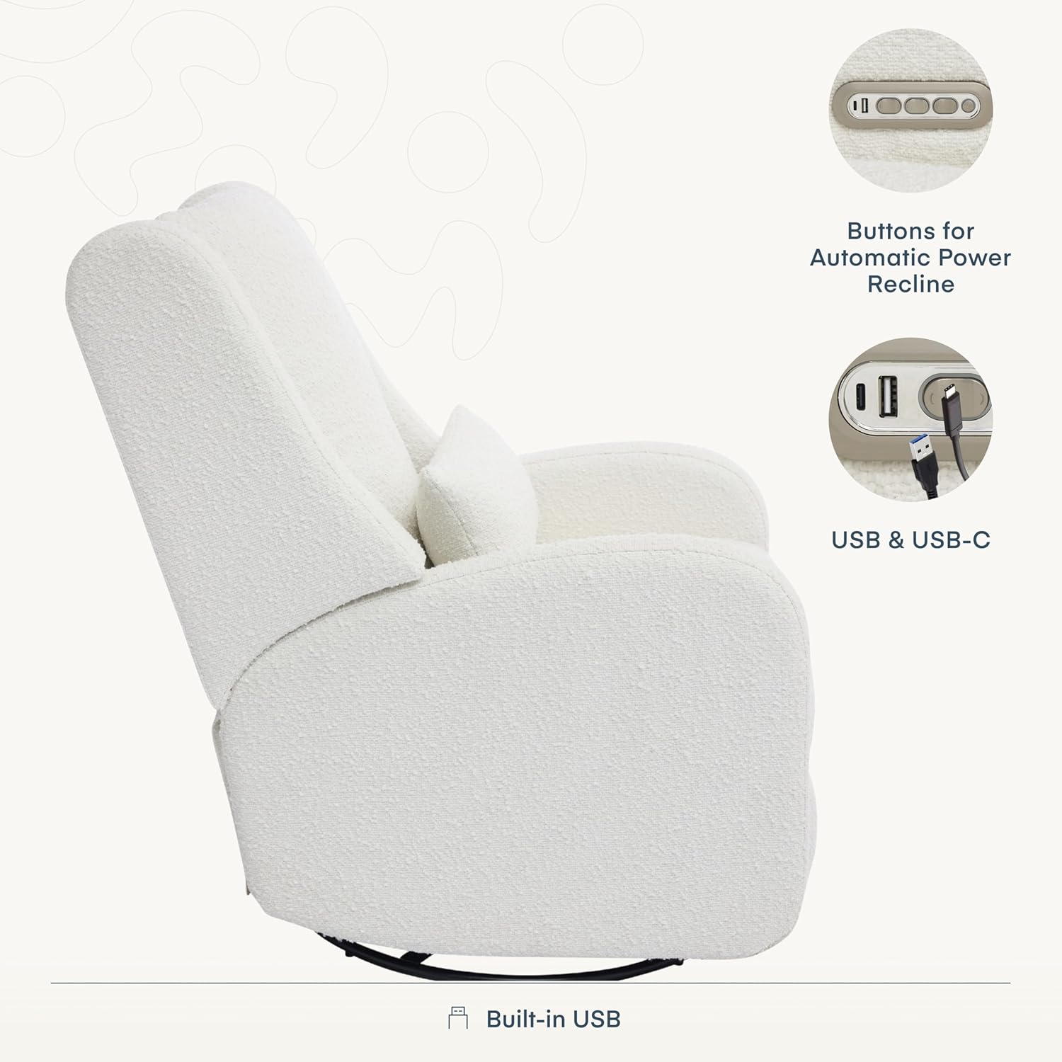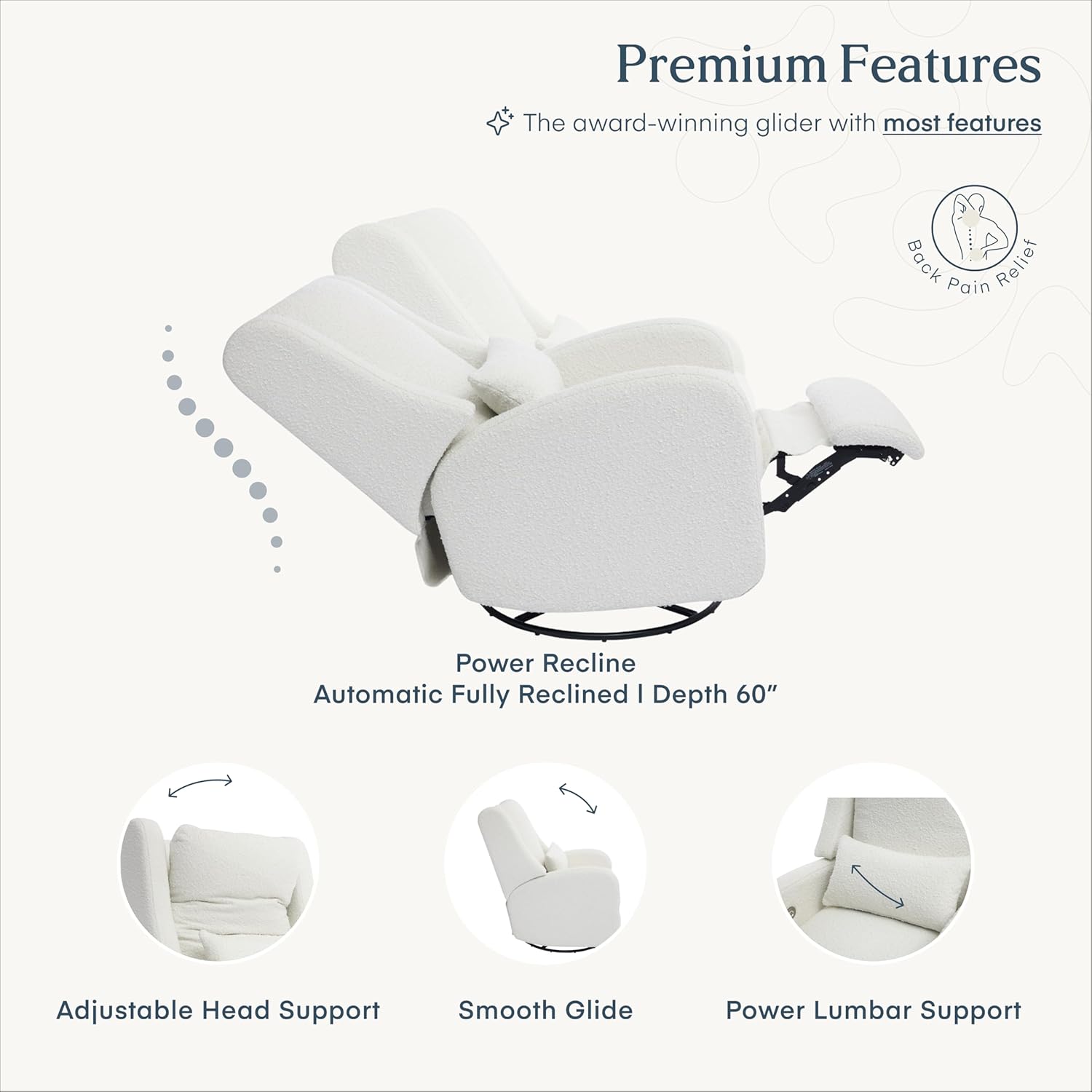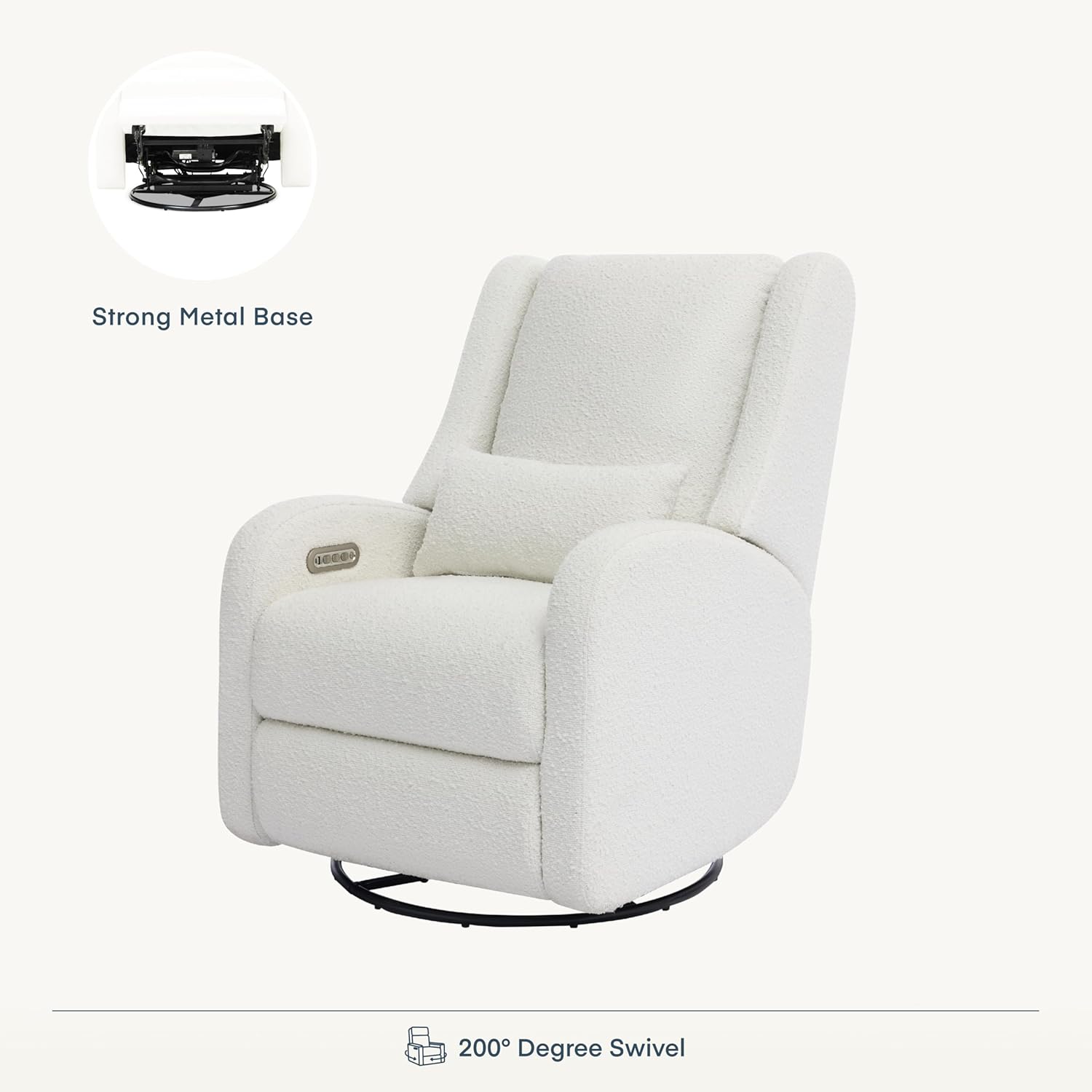Effortless comfort meets timeless design. The Wingback Plus features smooth power recline, soft gliding, built-in lumbar support, and stain-resistant fabricdesigned to support you through every stage of parenthood with style and ease.