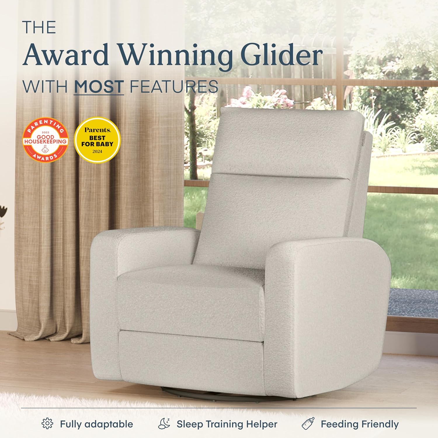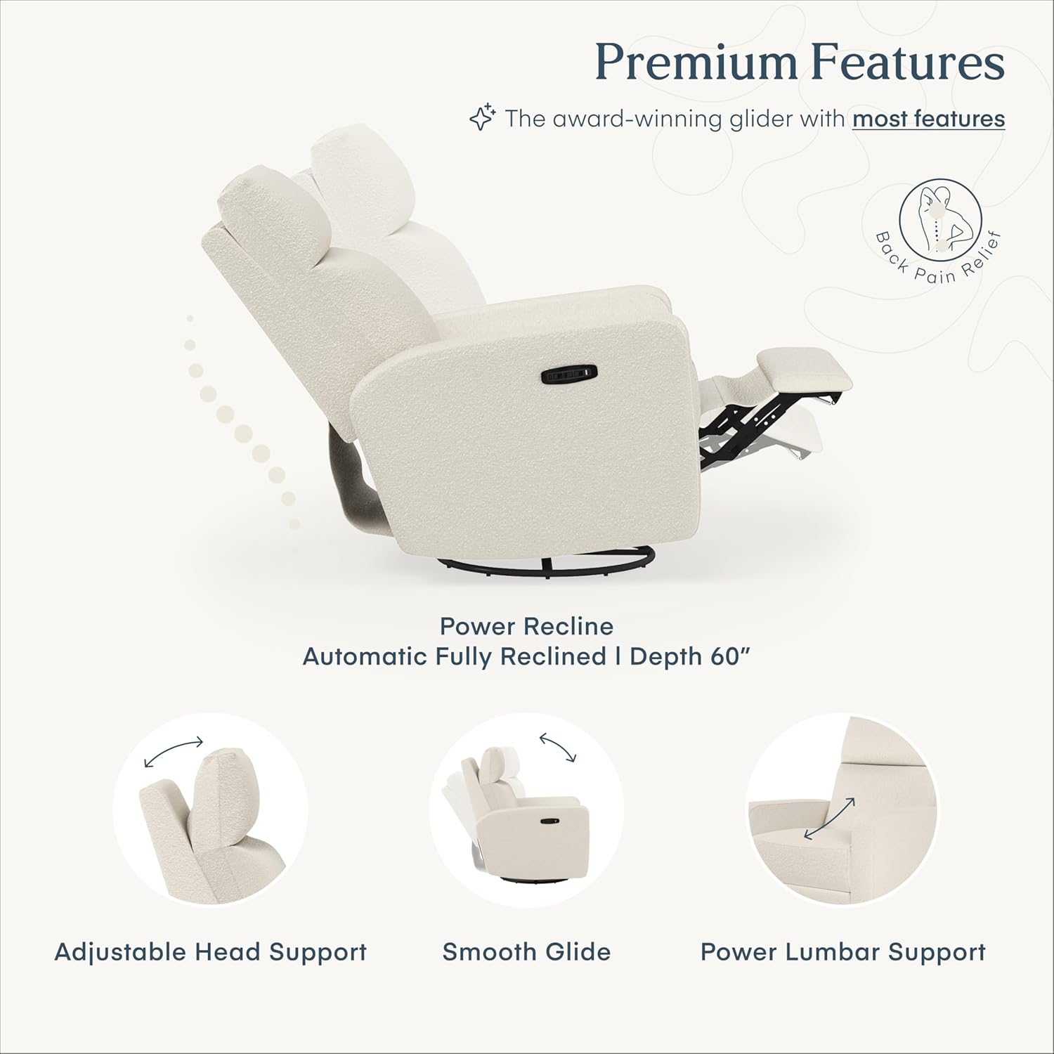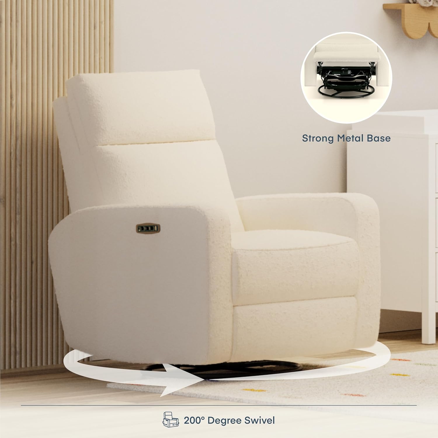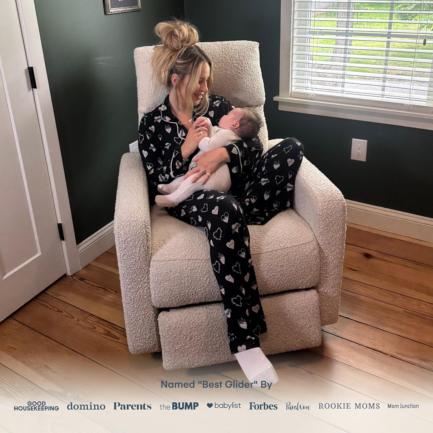 POWER LUMBAR SUPPORT: Our nursery glider is designed with your comfort in mind, featuring a built-in power lumbar support system that provides exceptional lower back support. With multiple levels of adjustable support, you can find the perfect level of comfort for different activities such as nursing, reading, sleeping or just relaxing. This glider's power lumbar support will help reduce tension and strain on your back, ensuring you can enjoy extended periods of relaxation without discomfort.