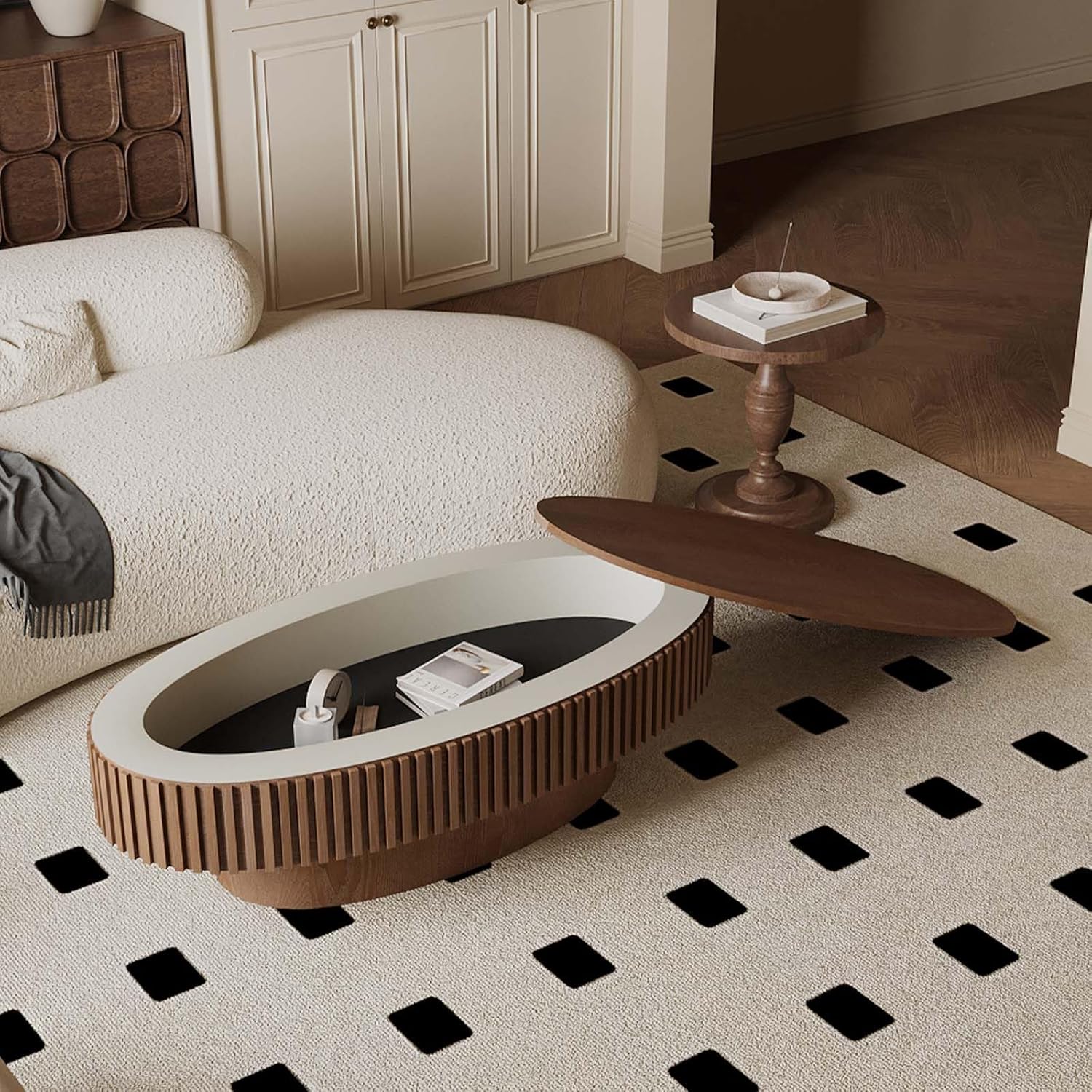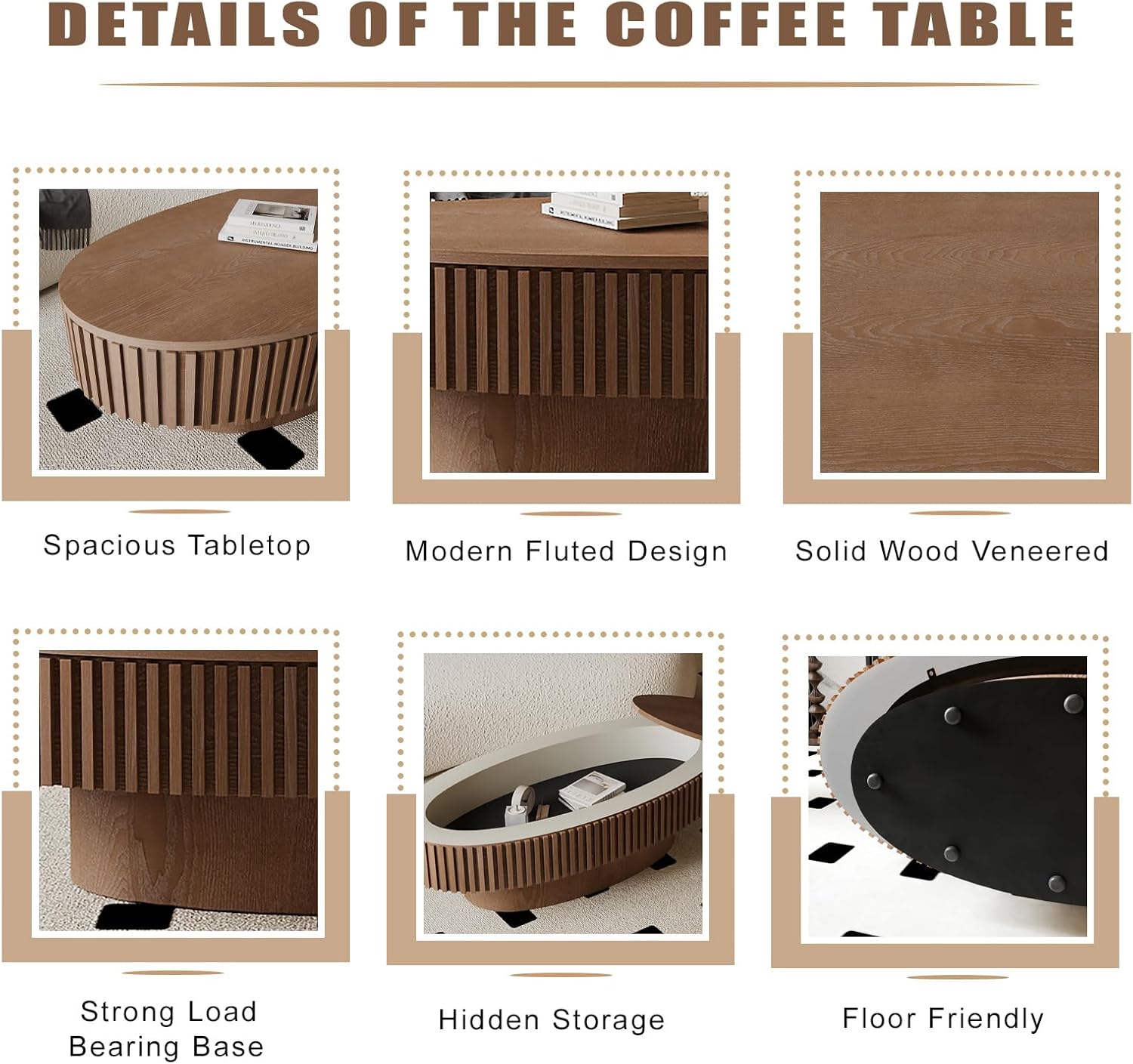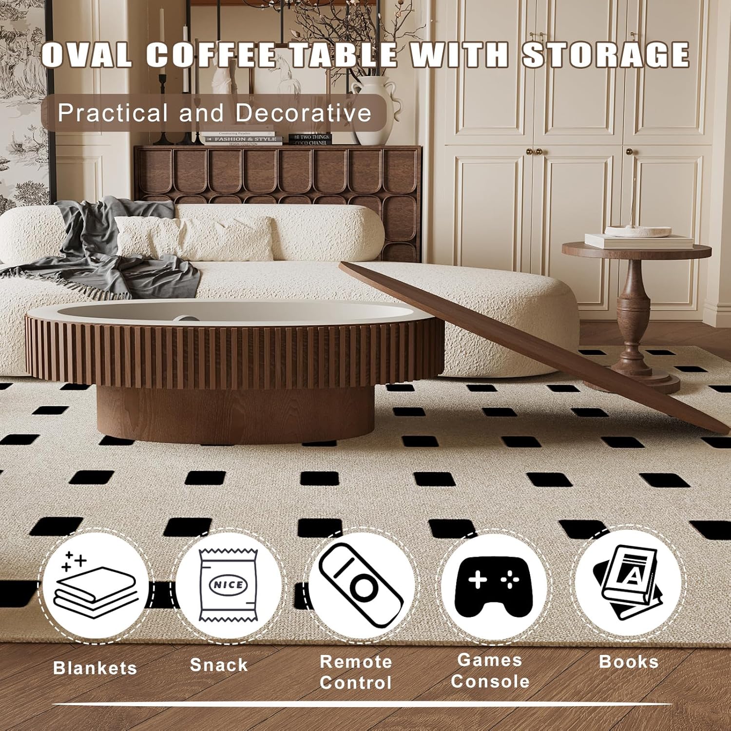 Covert Storage: This oval coffee table with storage offers ample space for displaying decorative items, such as handicrafts, scented candle, framed photographs etr. The hollow interior provides a hidden storage space for magazines, books, toys or your coffee table essentials within reach