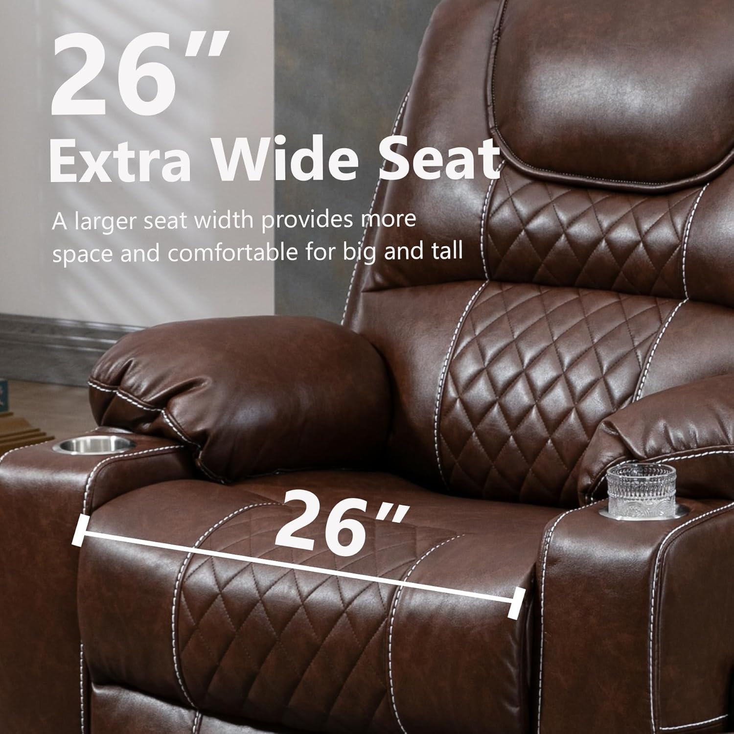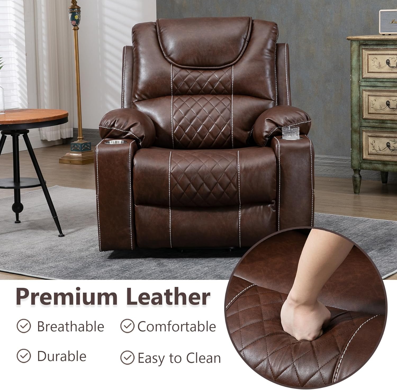 Comfortable Sofa Chair: Crafted with premium breathable faux leather for a comfortable and easliy clean finish. This big man recliner chair has a weight capacity of up to 400 lbs. The specially designed, thickened front cushion effectively enhances thigh support, ensuring stability and stability even after extended use, providing a long-lasting and comfortable sitting and lying experience.