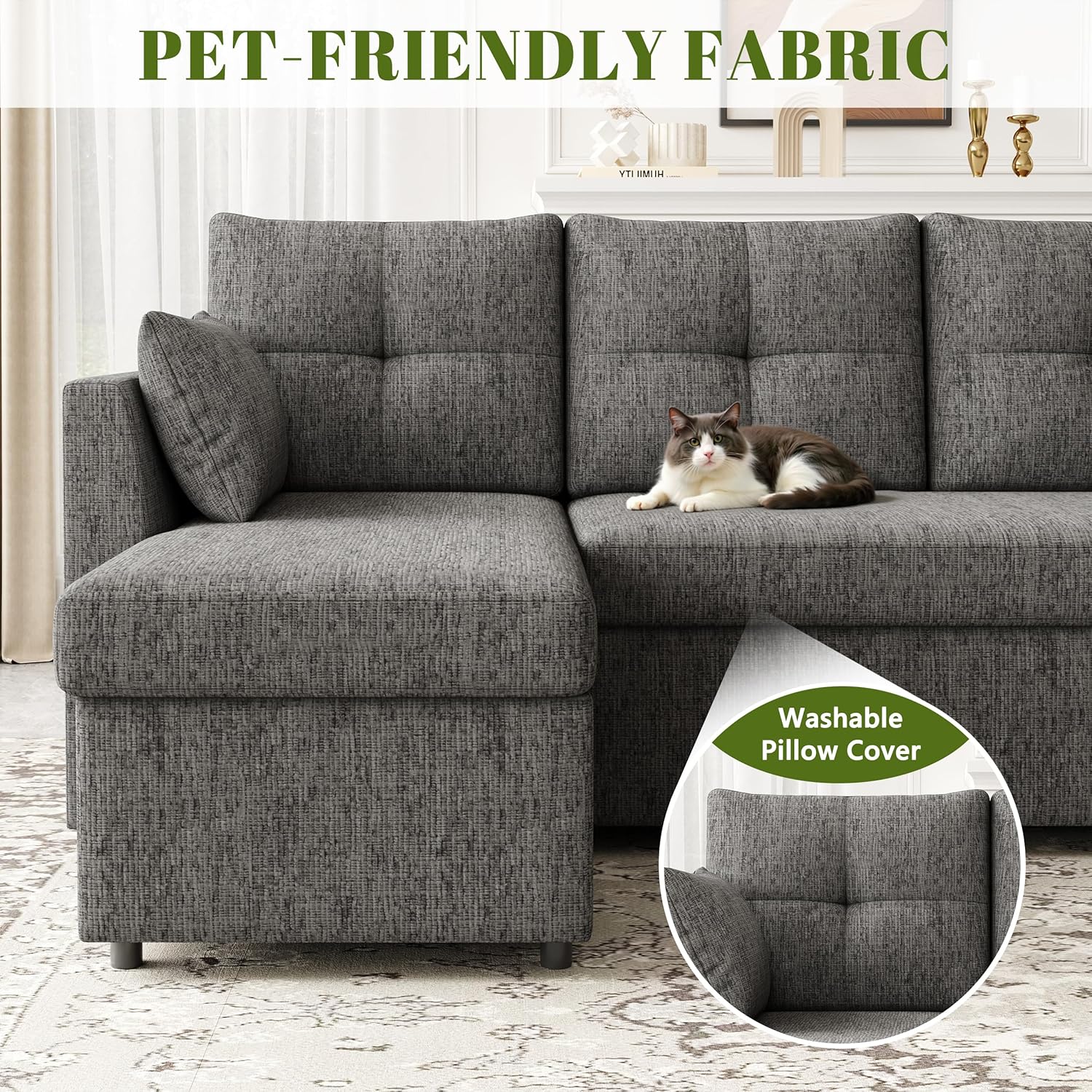 COMFORTABLE AND BREATHABLE: Enjoy a plush sitting and lounging experience with comfortable cushions and breathable, anti-pilling fabric, ensuring a long-lasting fresh look of our sectional pull out couch