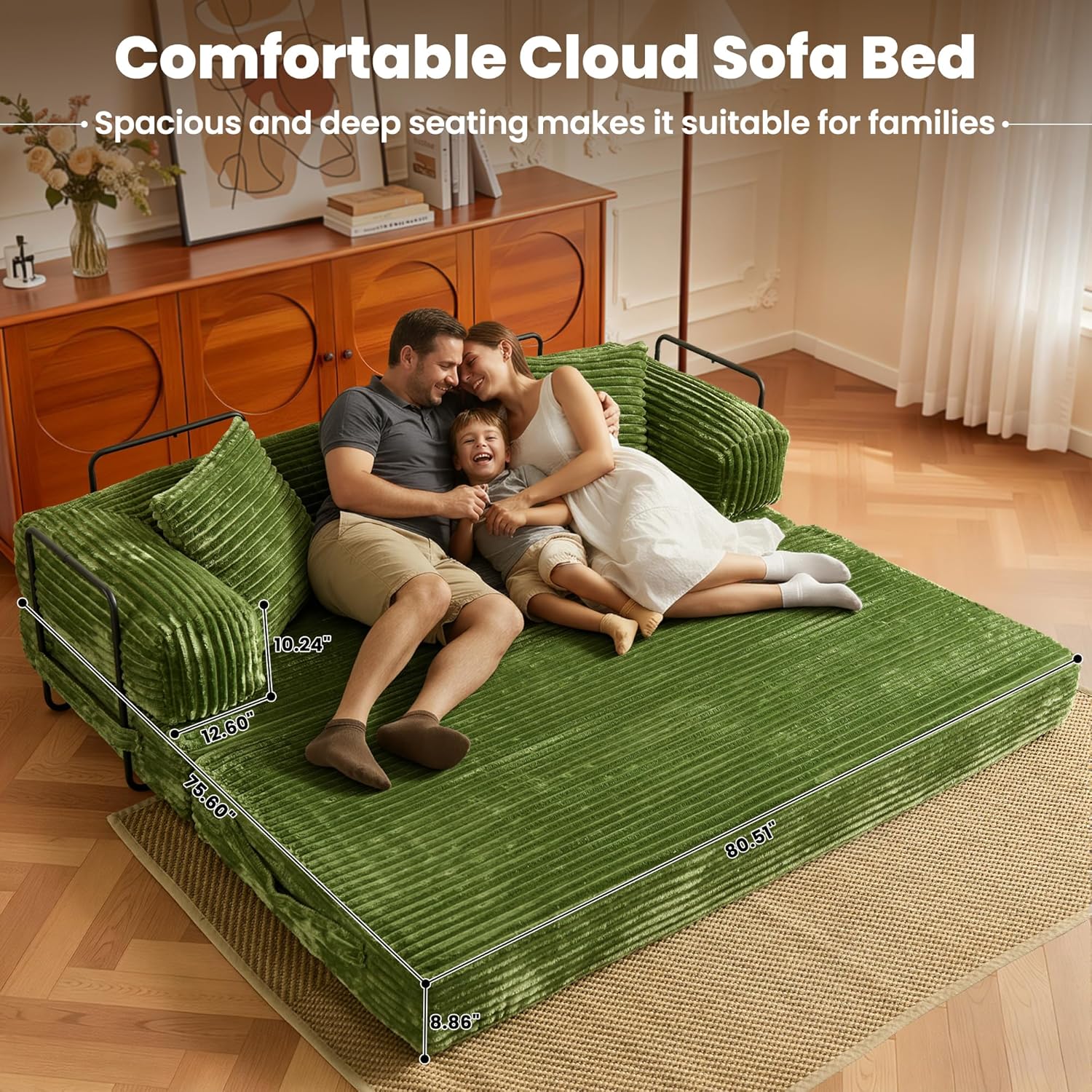 Oversized Deep Seat: The convertible reversible couch features 75.6 inch deep seating area, convert to a sofa bed to easily meet your rest and sleep needs. The deep seat cushion perfectly wraps the body. Enjoy the flexibility of our ingenious futon sofa bed design