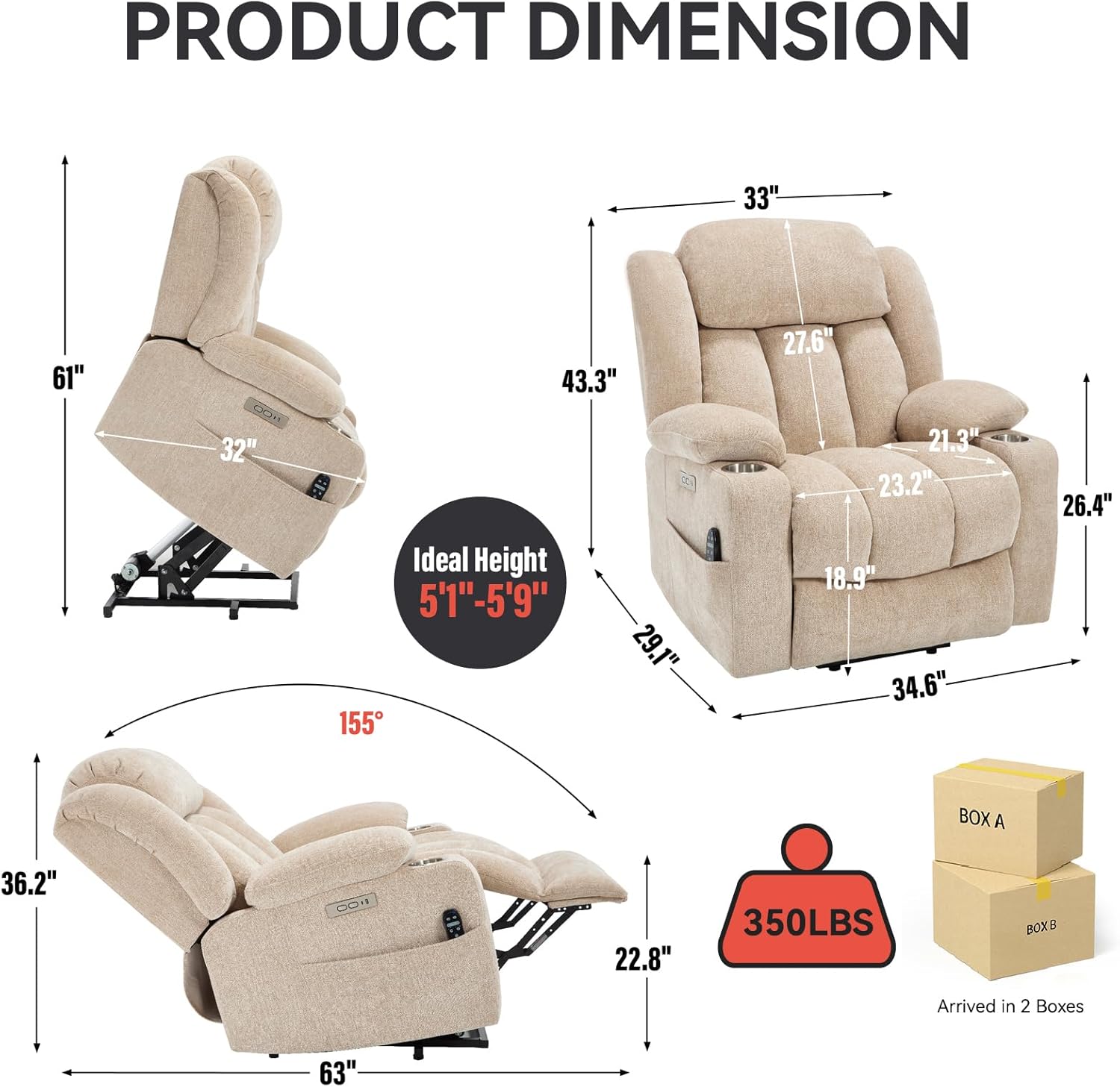 Premium Chenille Fabric & Easy-Clean Durability: Designed for lasting comfort, this recliner chair is upholstered in premium, soft chenille fabric that is both durable and easy to clean. Simply wipe with a dry or damp cloth to maintain its pristine look. Its robust construction supports up to 350 lbs, making it a reliable living room chair for long-term enjoyment.