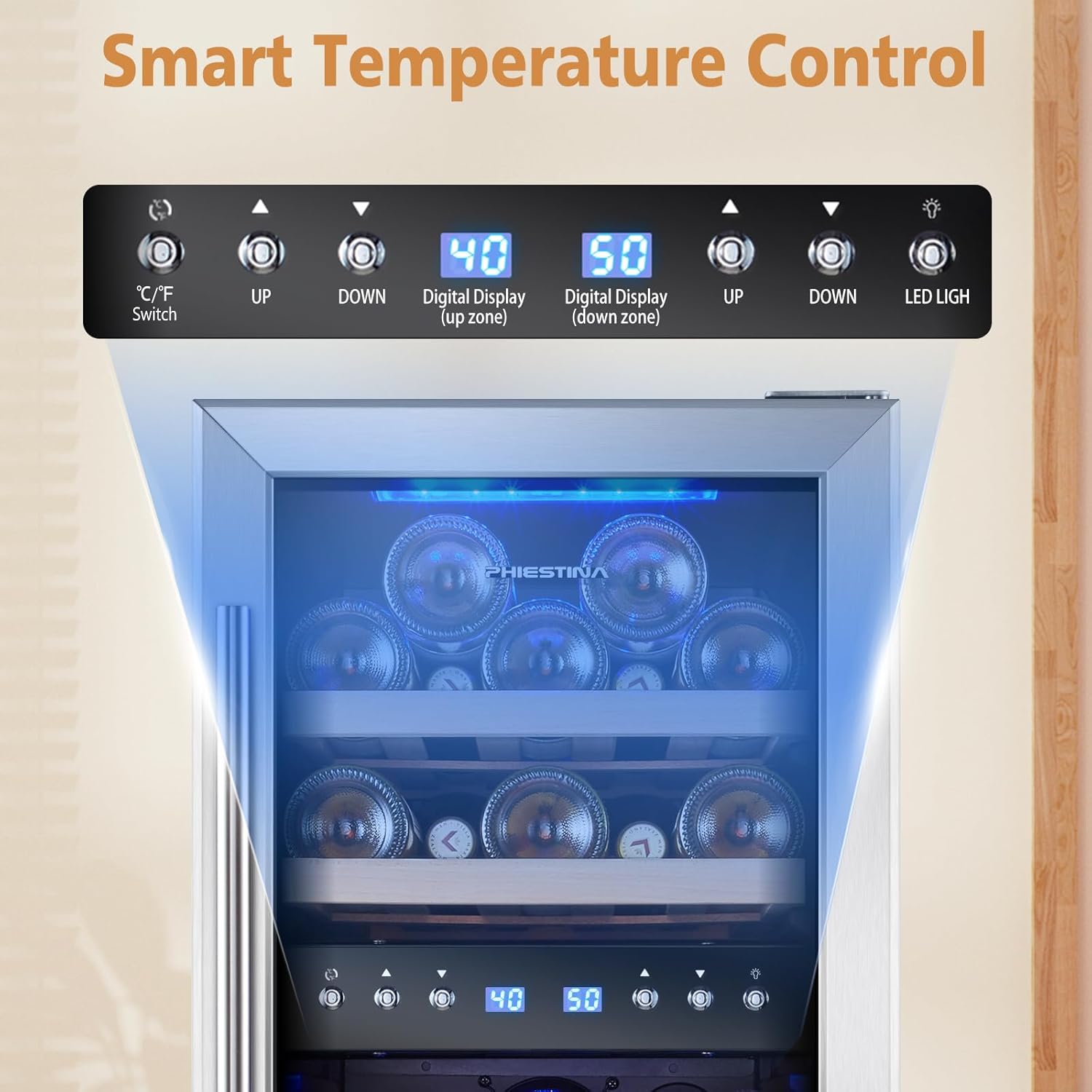 QUIET COMPRESSOR - The wine cooler operates at approximately 40 decibels, allowing you to enjoy happy and peaceful moments at home, in the office, or wherever you are! And that's not all! With a temperature memory function, there's no need to reset the temperature when the power is turned back on.