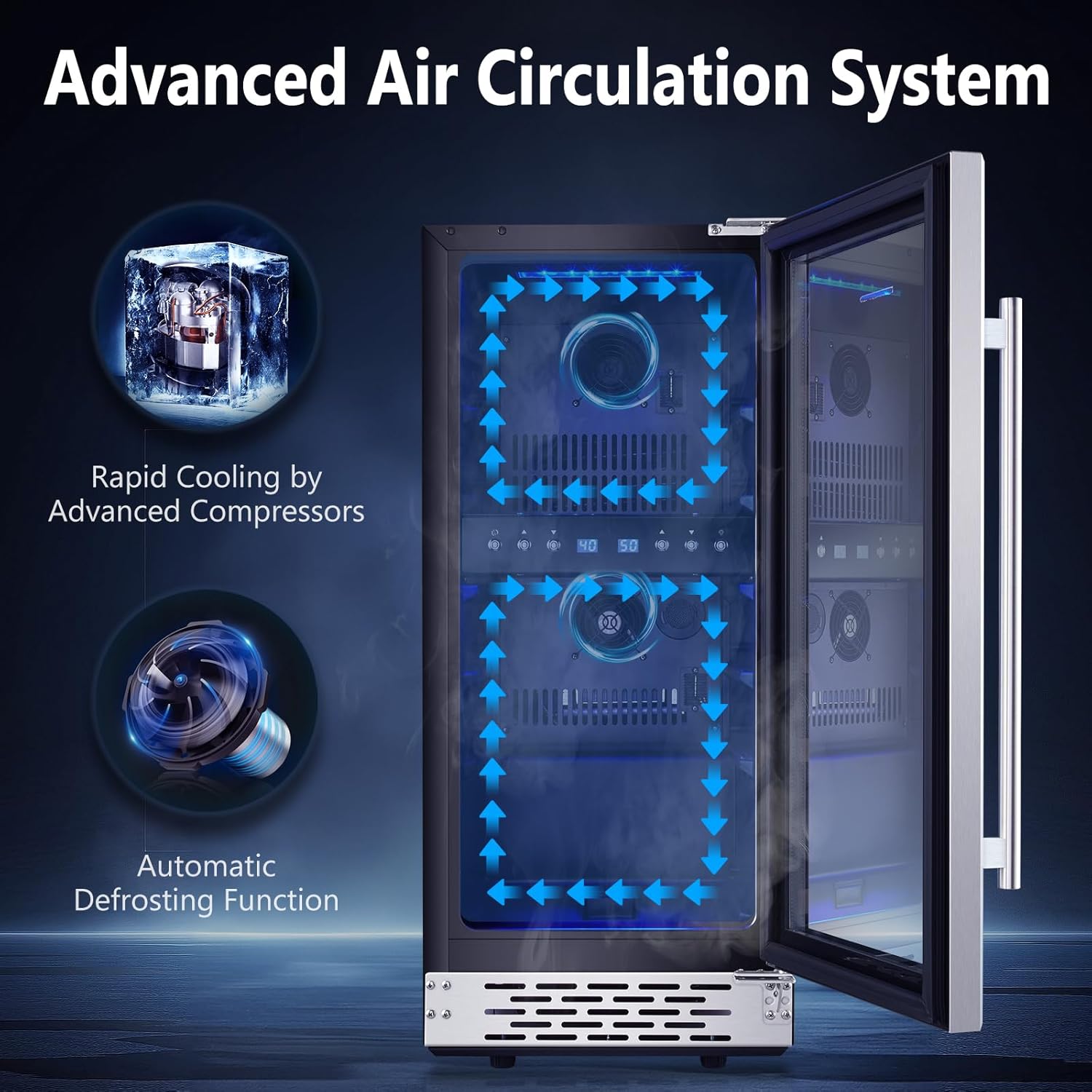 AUTOMATIC DEFROST - This great feature runs for 6 hours and stops for 30 minutes, reducing the hassle of cleaning the fridge to a mere nothing! The Convertible glass door and dual zones function are even more user-friendly designs, upper 40-50, lower 50-66, perfect for storing white & red wines at different temperatures.