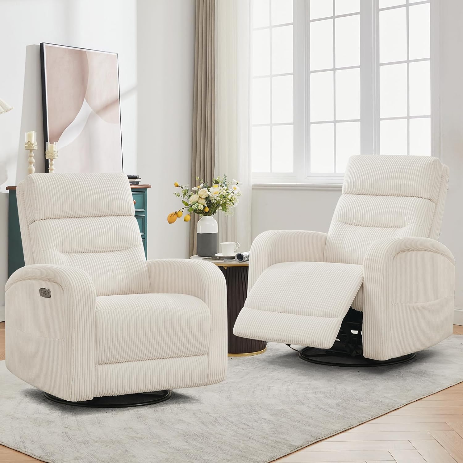 Stable and Durable Experience unmatched strength and durability with our nursery glider recliner. Featuring a robust metal frame, this electric recliner chair ensures exceptional stability while allowing smooth swiveling. Designed to support up to 350 lbs, you can relax confidently. Constructed with premium materials, including a solid wood frame and metal base, our swivel rocker recliner guarantees safety and longevity