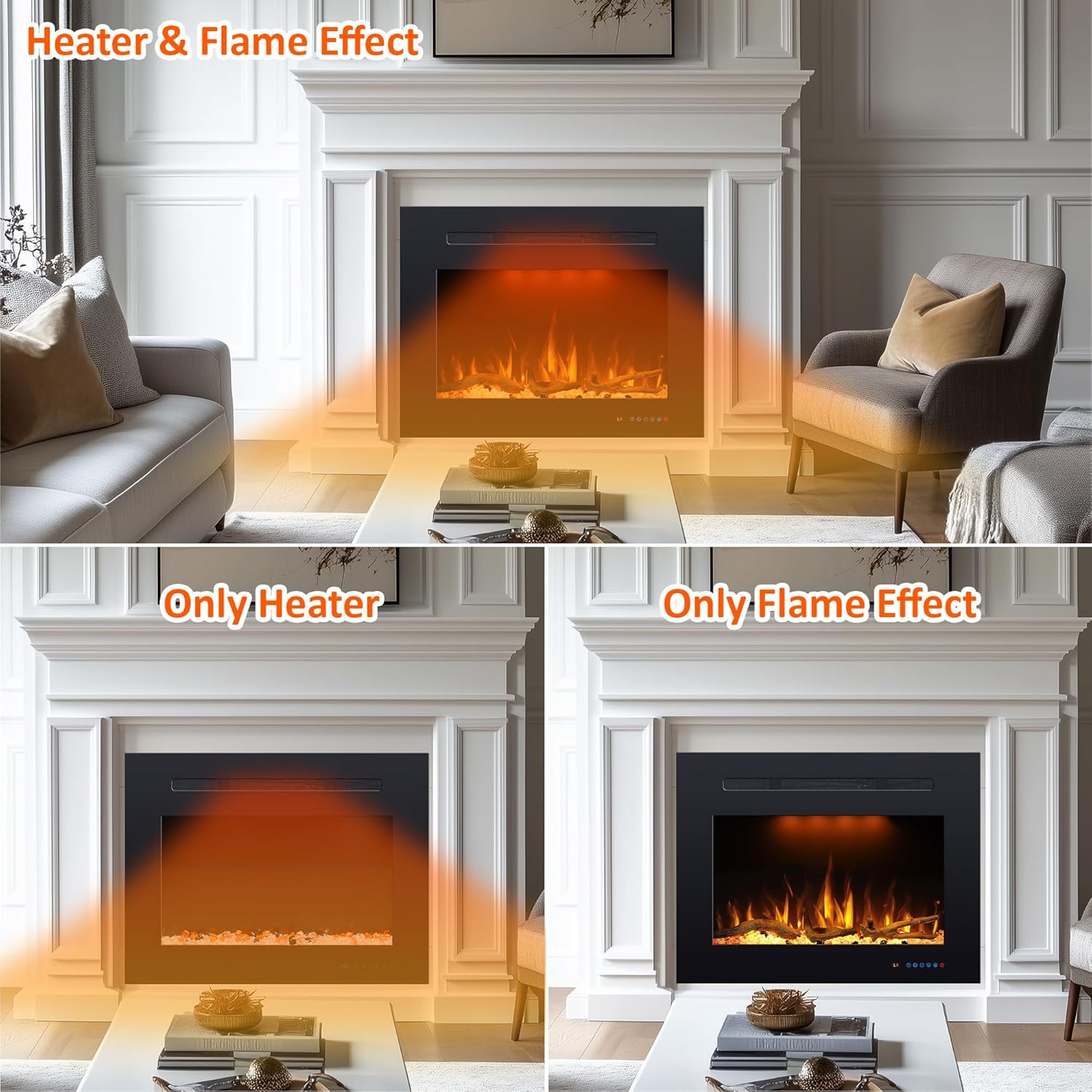[Adjustable Flame] Yellow, blue and mixed colors(yellow&blue&purple), adjustable flame creates a changing atmosphere. This electric fireplace inserts have unique styling design that is suitable for rooms with modern and simple decor.