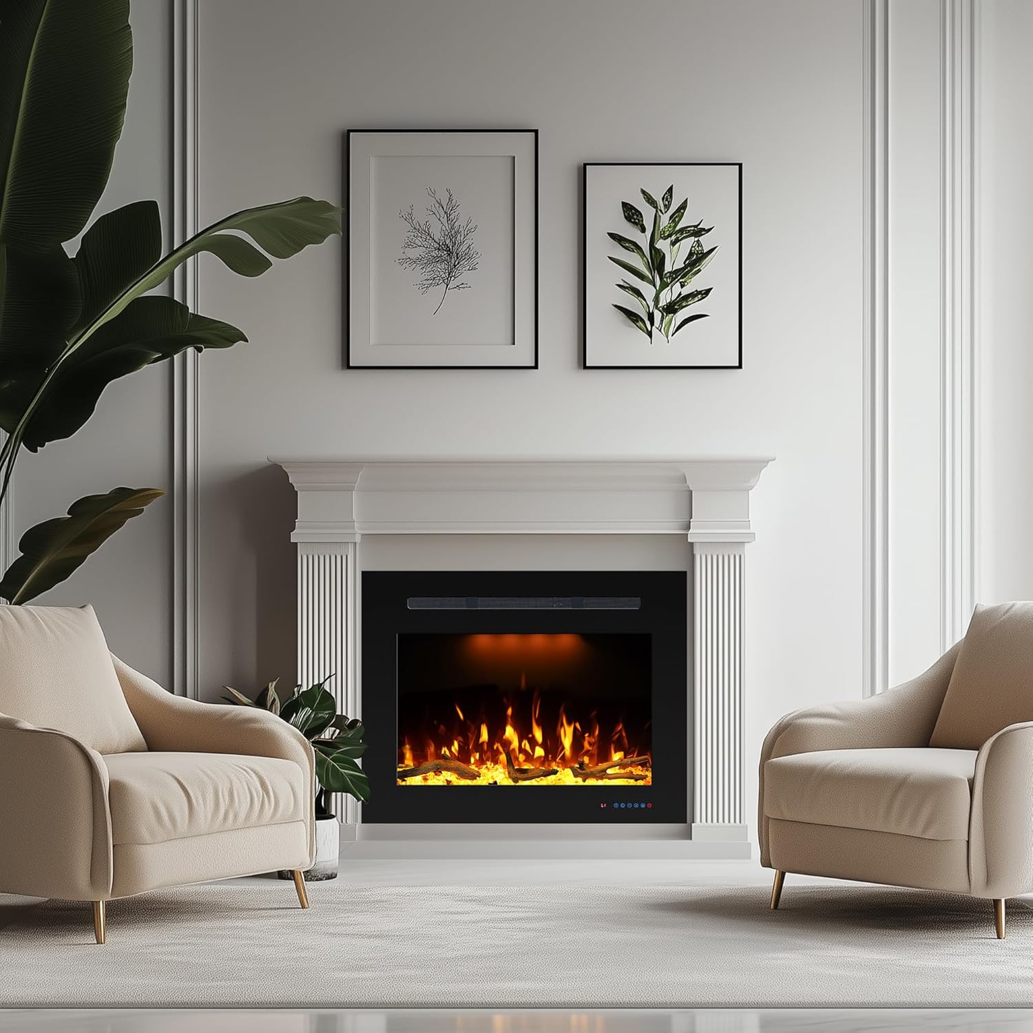 • Prismaster 32.23" W x 26" H Rear Electric Fireplace Insert with Crackling, Fireplace Heater with Adjustable Flames, 62-99 Thermostat,Only Recessed