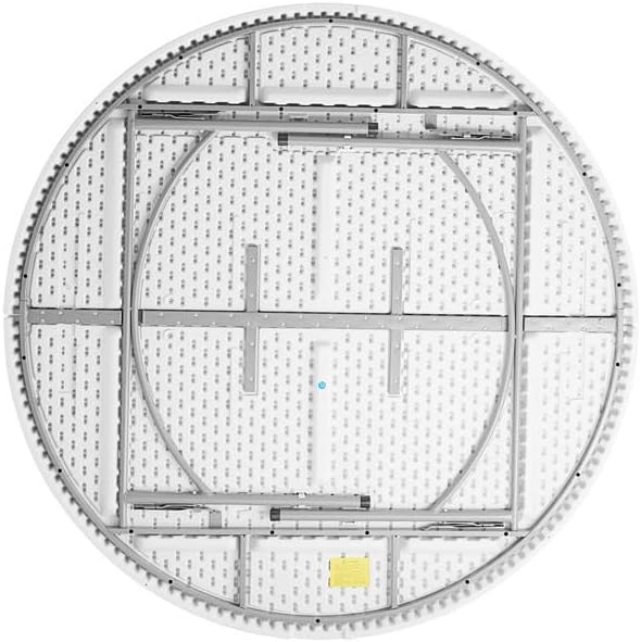 You can use this 72 inch round table at any bar, restaurant, buffet, catered event, school function, or office break room. Its high-impact polyethylene top will not crack, chip, or peel, making it an extremely cost-effective option for your business. This white folding table round also features a heavy-duty powder-coated steel frame fully equipped to hold even your heaviest serving platters or chafing dishes.