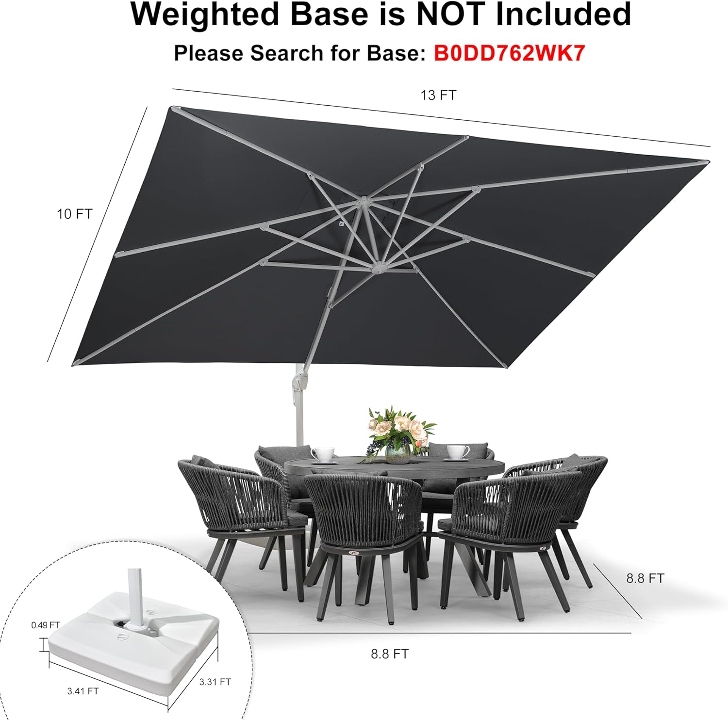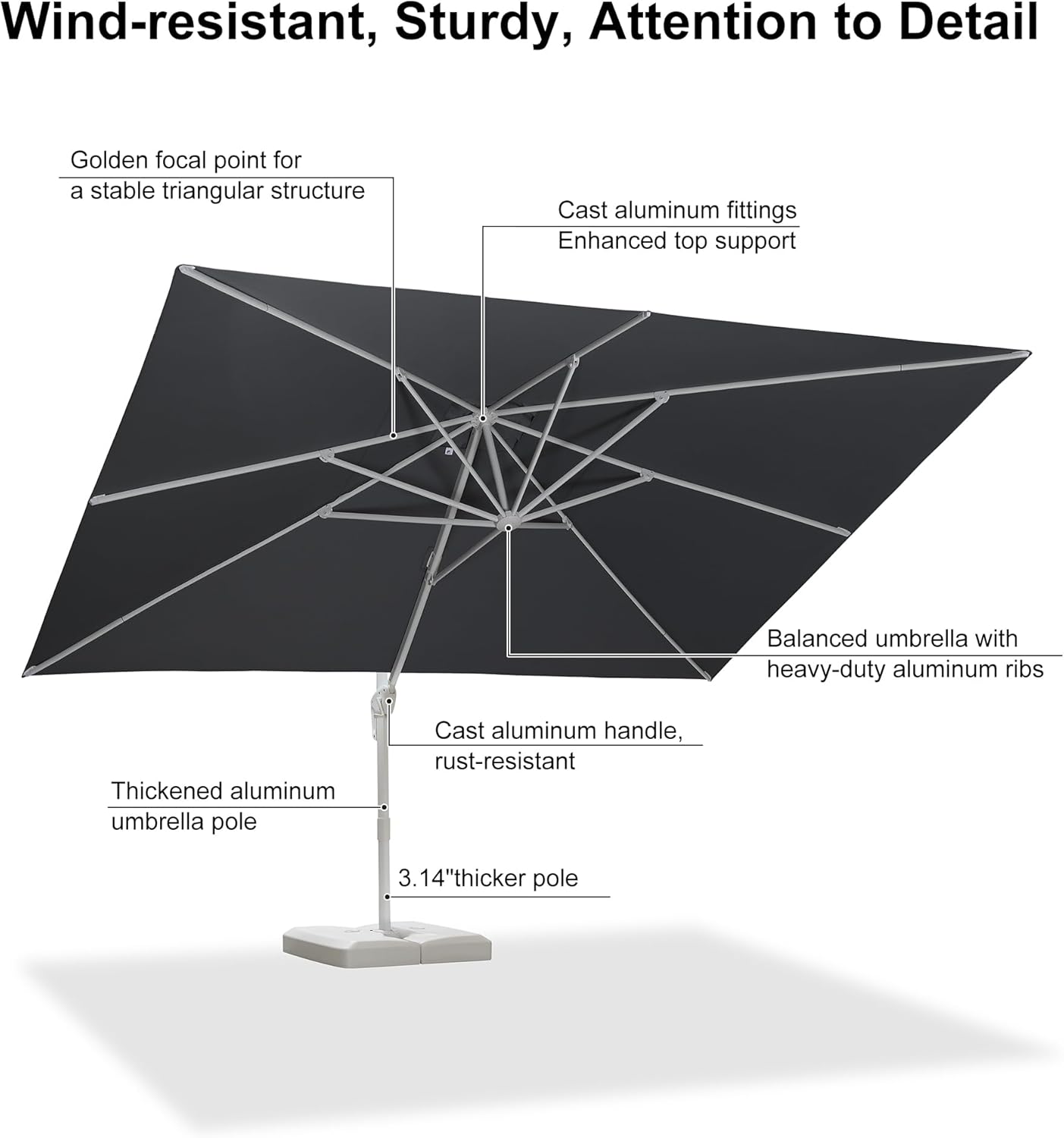 Upgraded Materials: The offset umbrella has a Upgraded 240/gsm dyed polyester fabric that's UV-protective; water-repellent and colorfast fadeless
