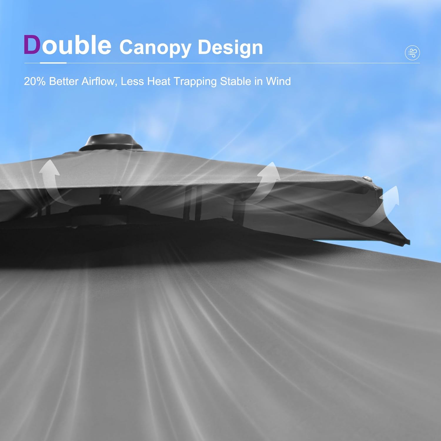 DOUBLE TOP DESIGN: Double top air vent to allow enough air flow and heat venting, make your patio umbrellas more stable against windy condition