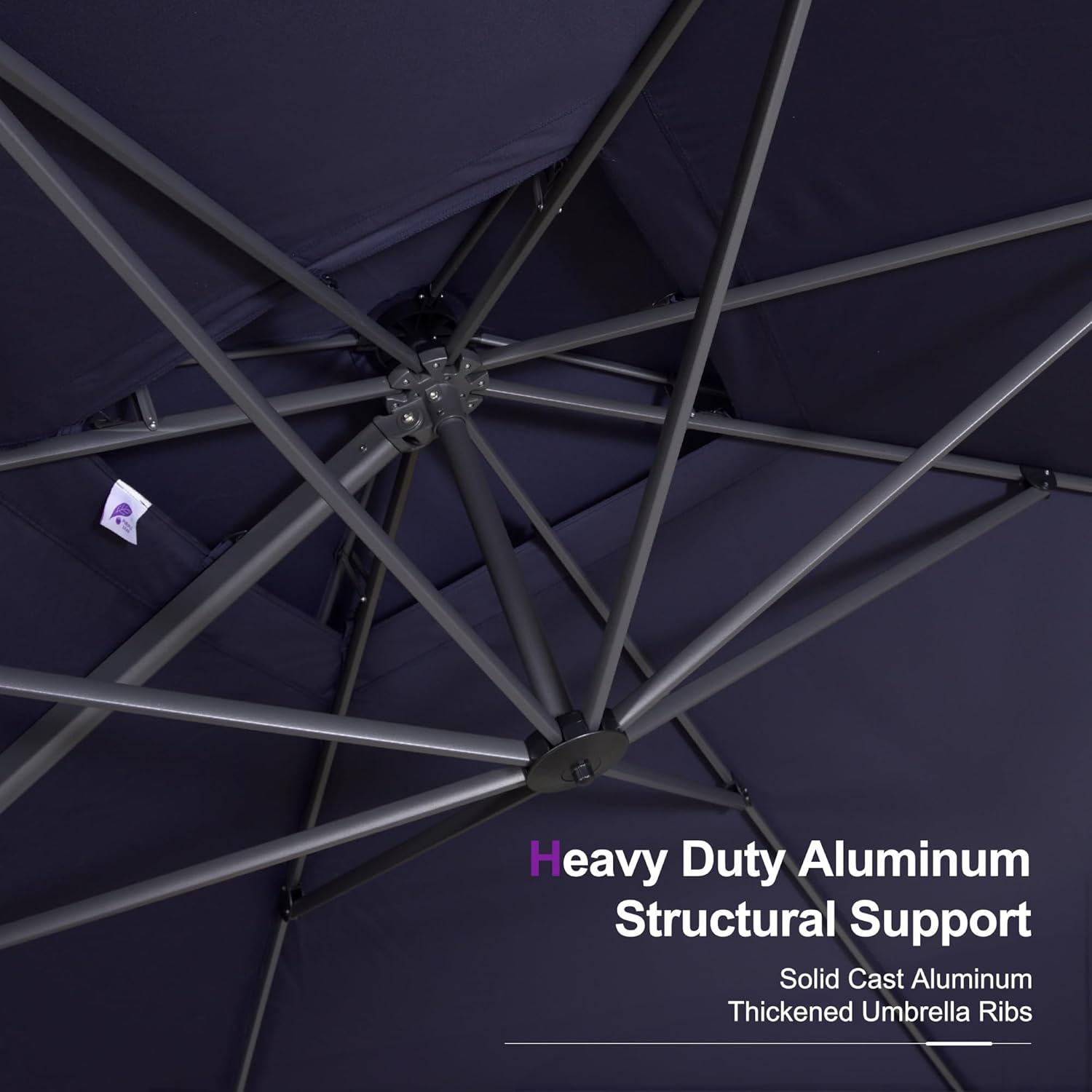 • 10FT Cantilever Outdoor Umbrellas Large Patio Umbrella Hanging Double Top Square Offset Umbrella with 360Rotation Tilting Umbrella Outdoor Patio, Navy Blue