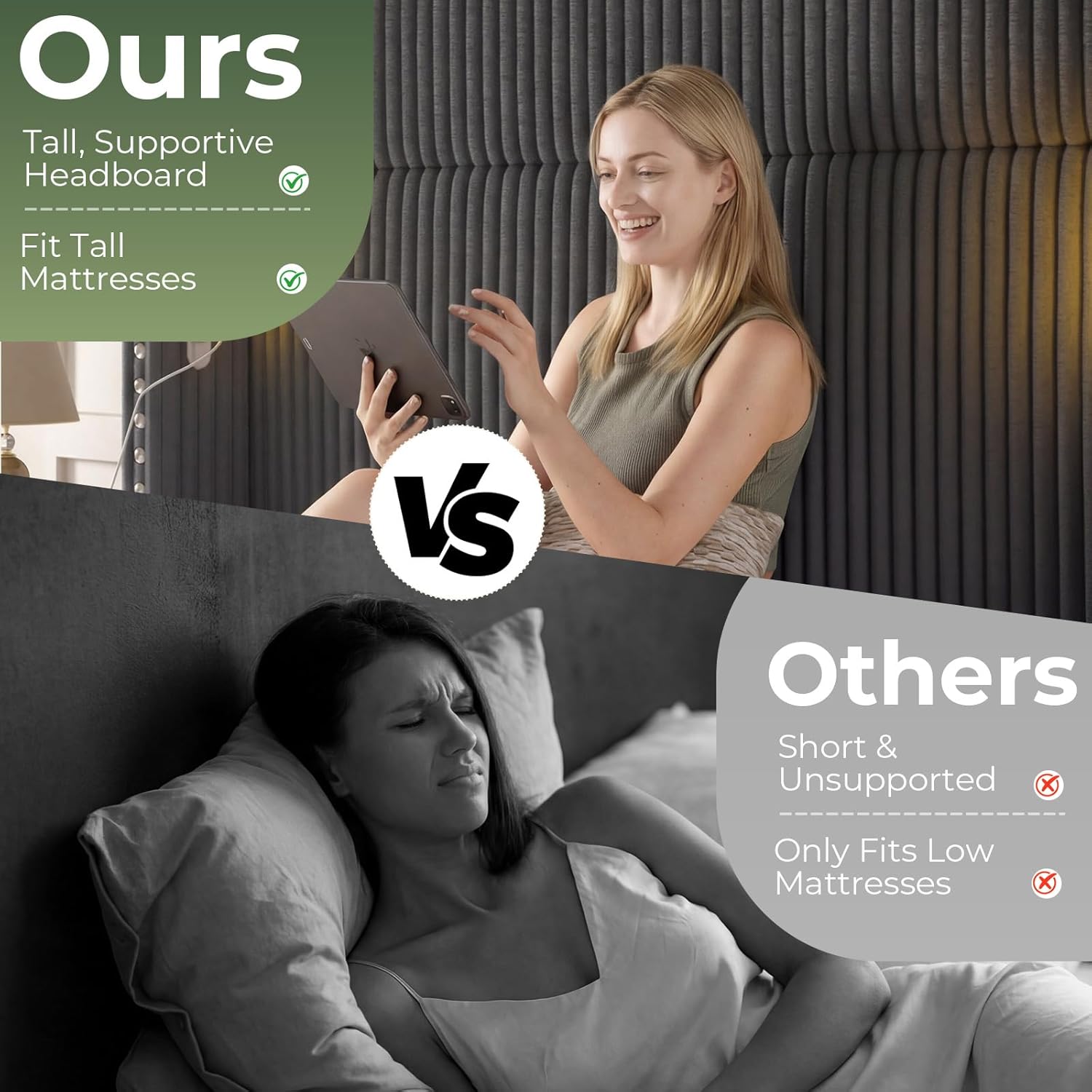 Stable & Silent Sleep: Built to handle 1200 lbs of real life. The triple-strength leg design and center support beam eliminate mattress dip. Combined with integrated noise-dampening, this Modern bed frame stays solid and silentnight after night, year after year.