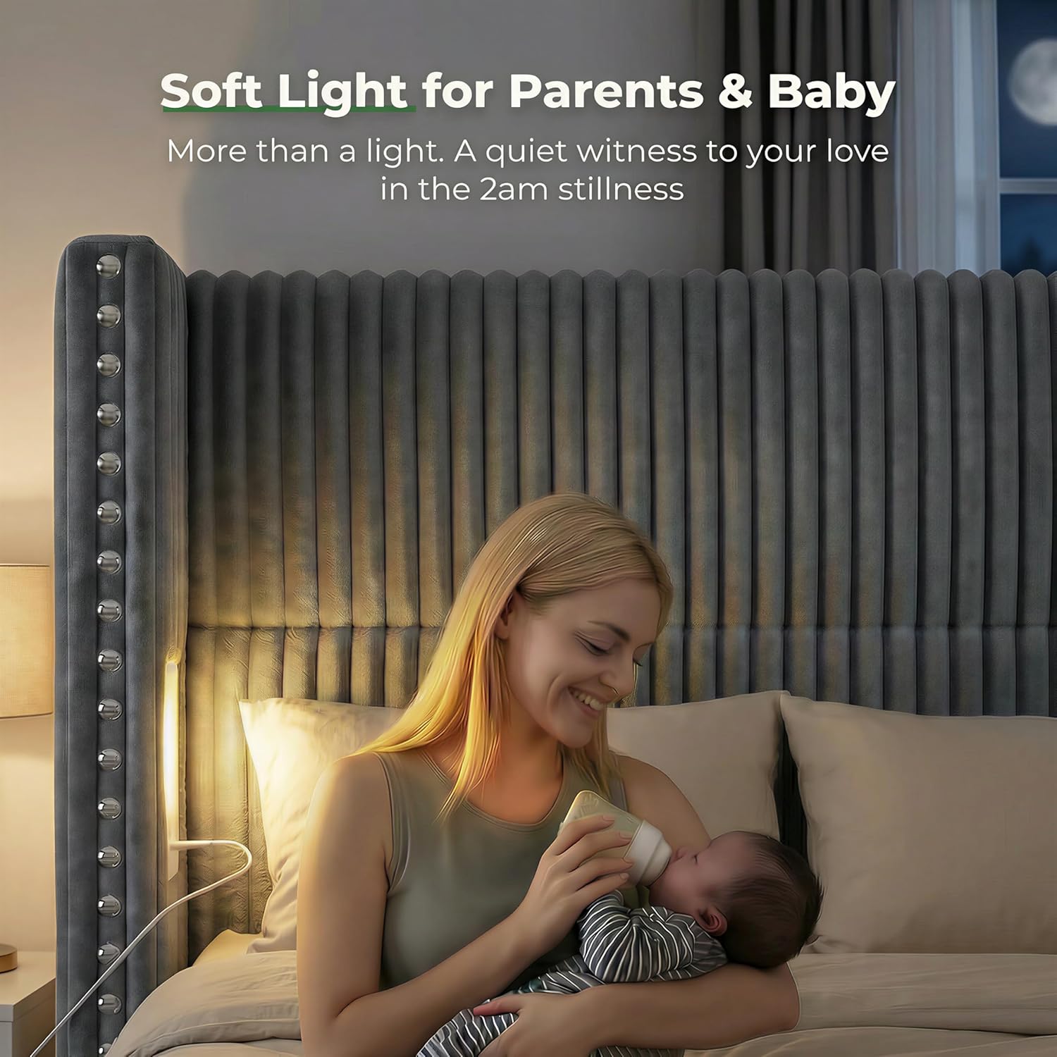 Warm Lighting For Real Nights: tap for light, hold to find the perfect glow. Created for the realities of adult lifelate work nights, caring for a baby, or unwinding with a book. Dual-side access means no climbing over or compromising.