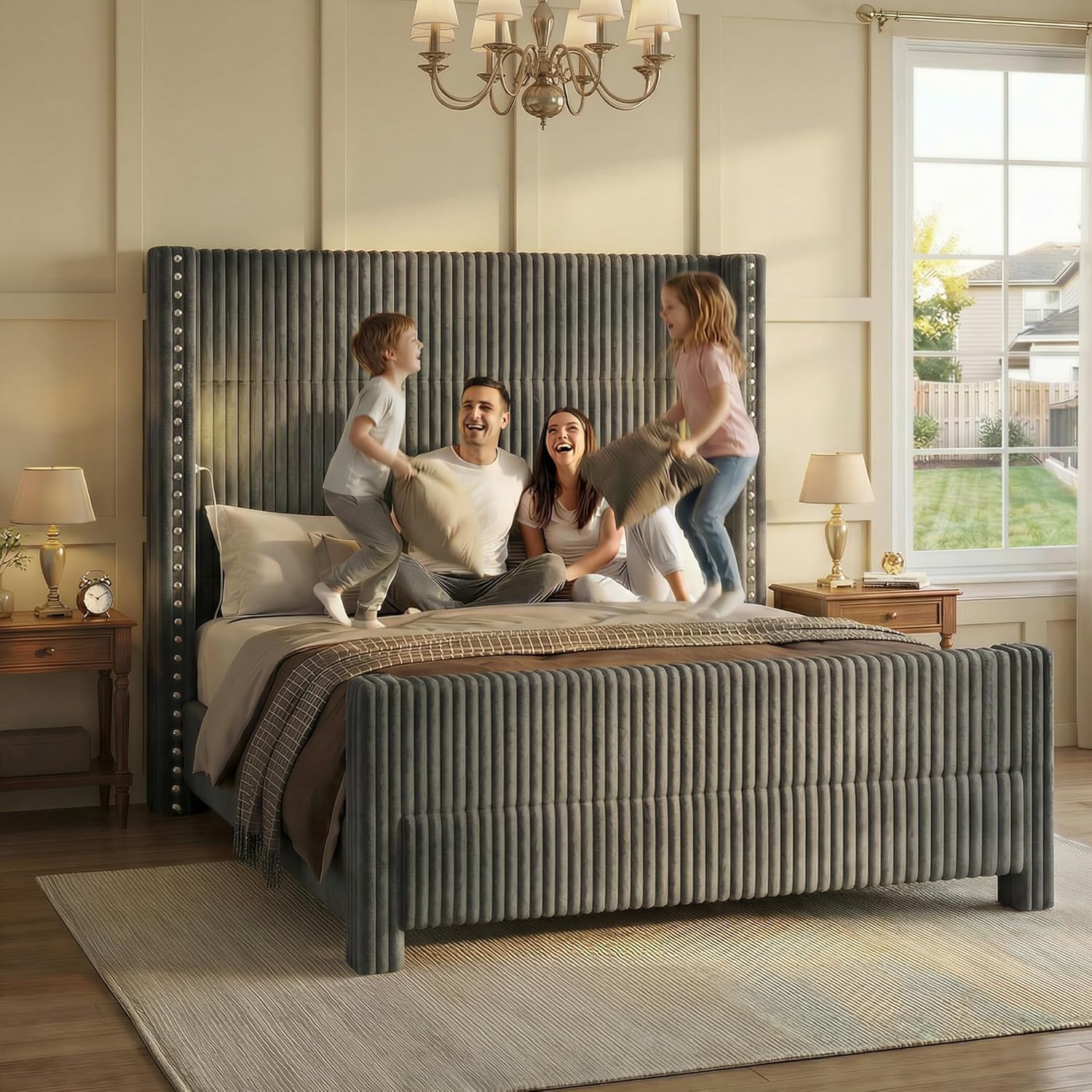 Corduroy Upholstered: Our corduroy isnt just softits smart. Softer than velvet for comfort, tougher than linen for longevity. The tailored channel tufting and wingback profile offer a timeless, tactile elegance that resists wear and feels inviting every single day.