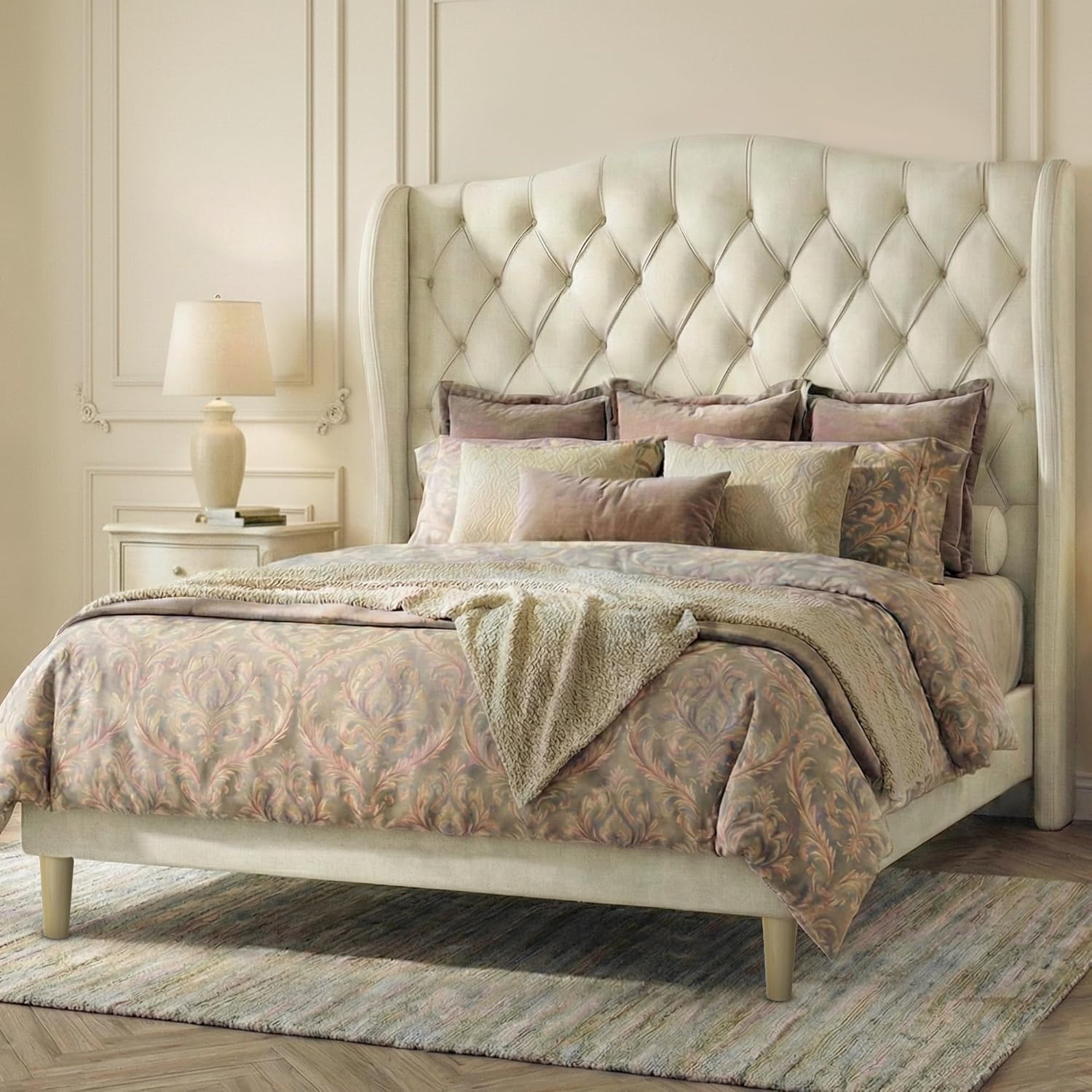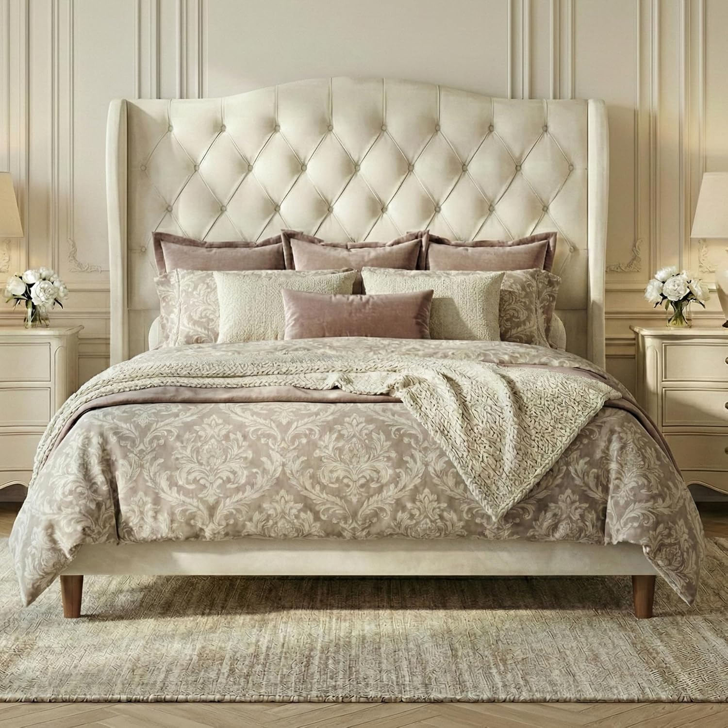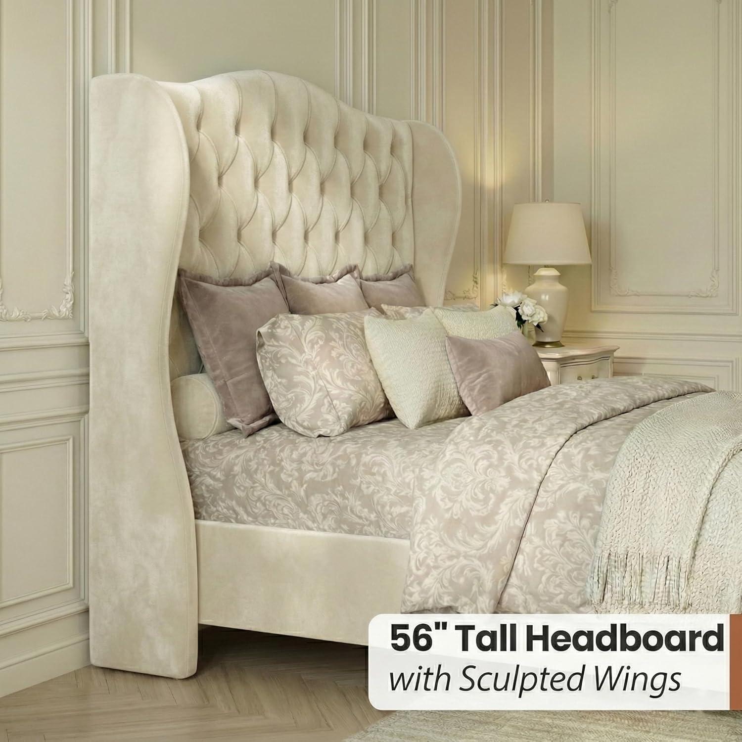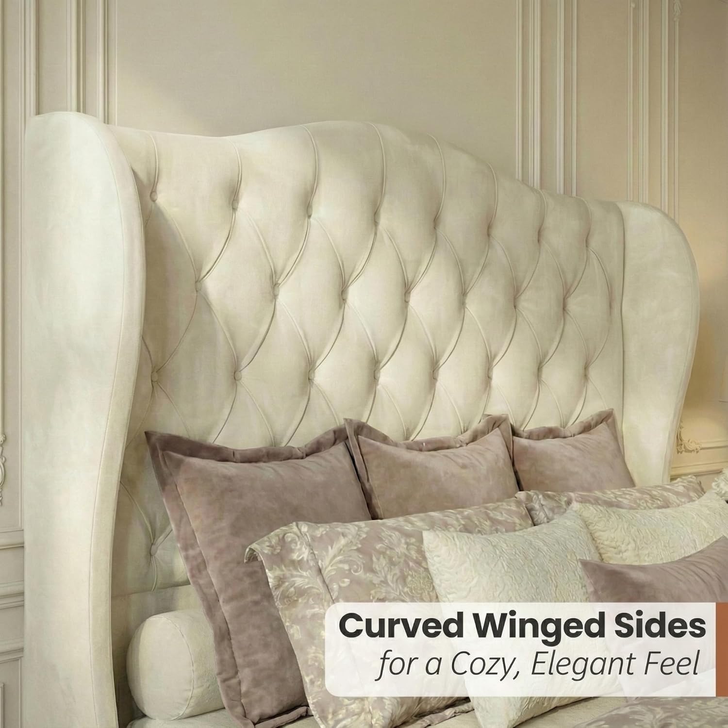 ULTRA-PLUSH VELVET COMFORT: Upholstered in premium, skin-friendly cream velvet, the headboard offers a soft, warm touch. Padded with high-density foam, it provides superior back support for reading or watching TV, while the curved wings offer a cozy sense of enclosure ("sleeping in a hug").