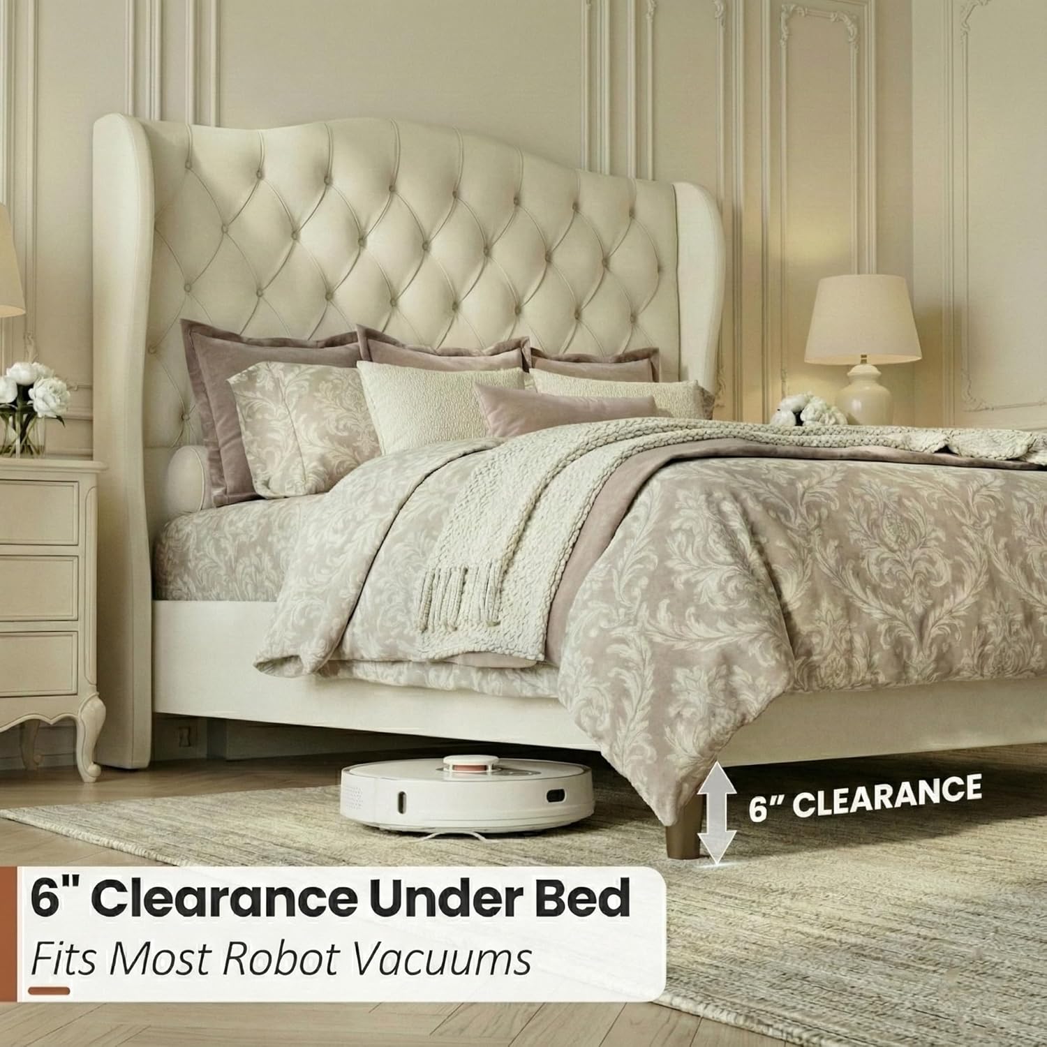 NOISE-FREE SLEEP: We applied silent EVA foam padding on the center metal beam to eliminate friction and squeaks. Enjoy a quiet, undisturbed sleep environment. The 6-inch under-bed clearance allows robot vacuums to pass through for easy cleaning.