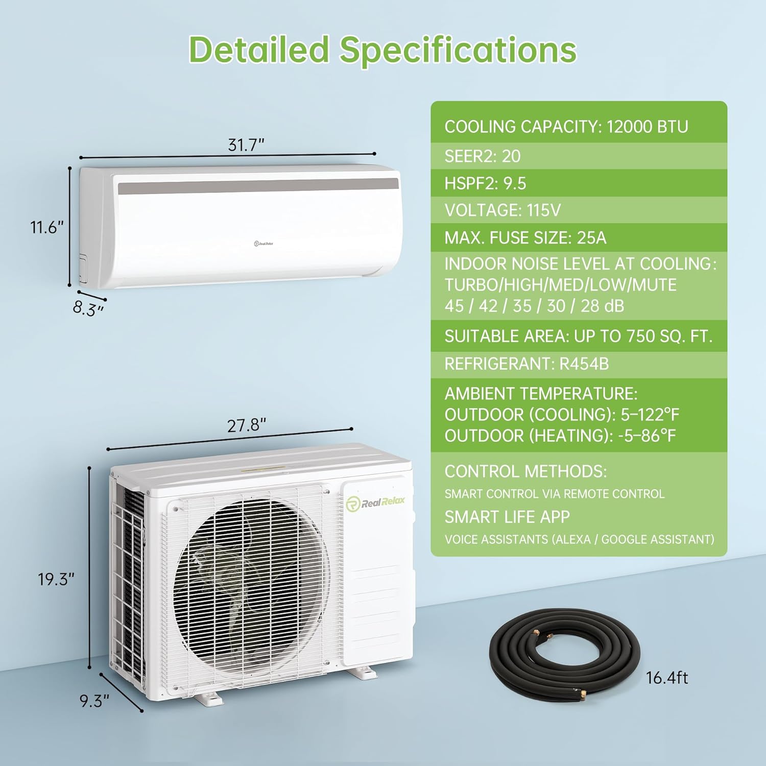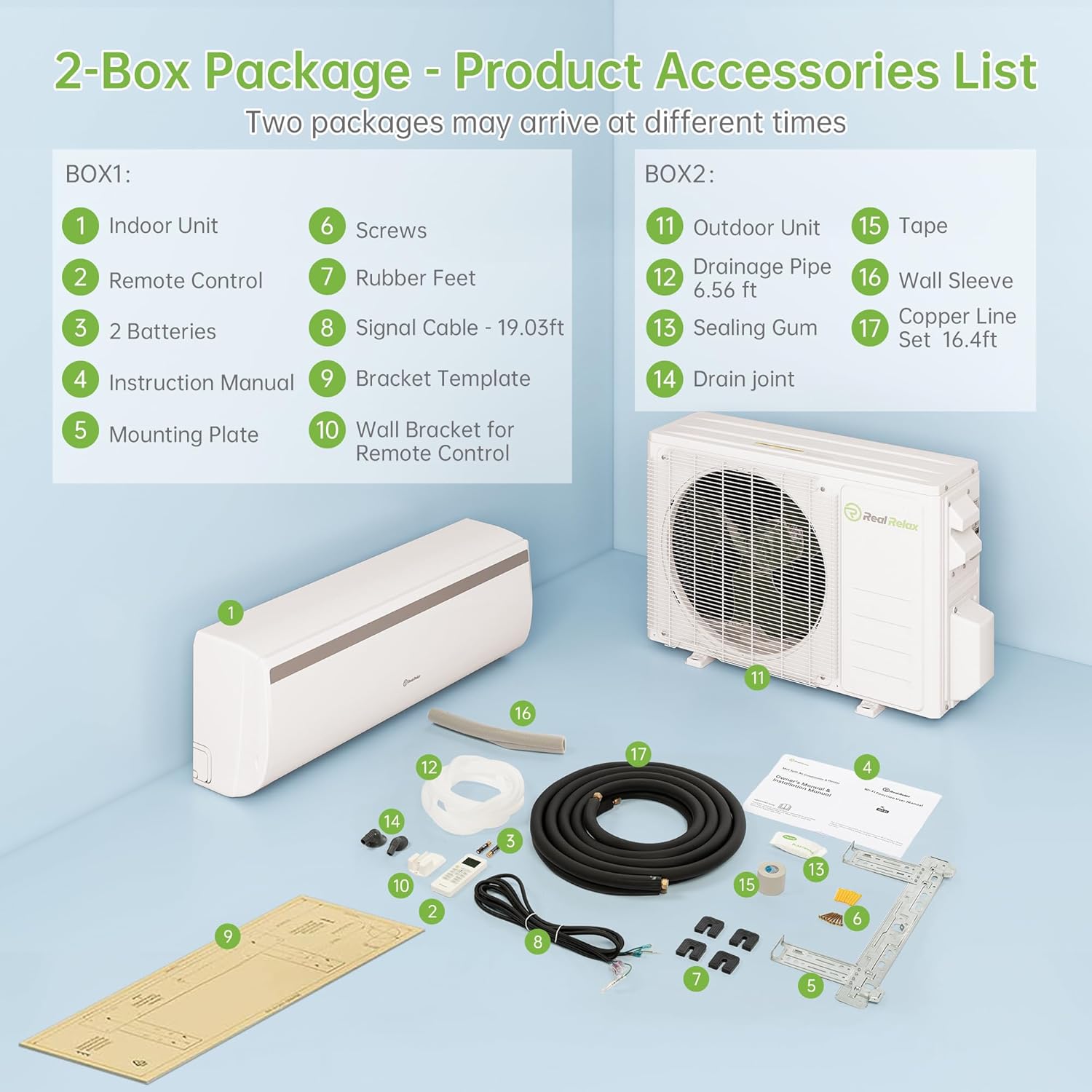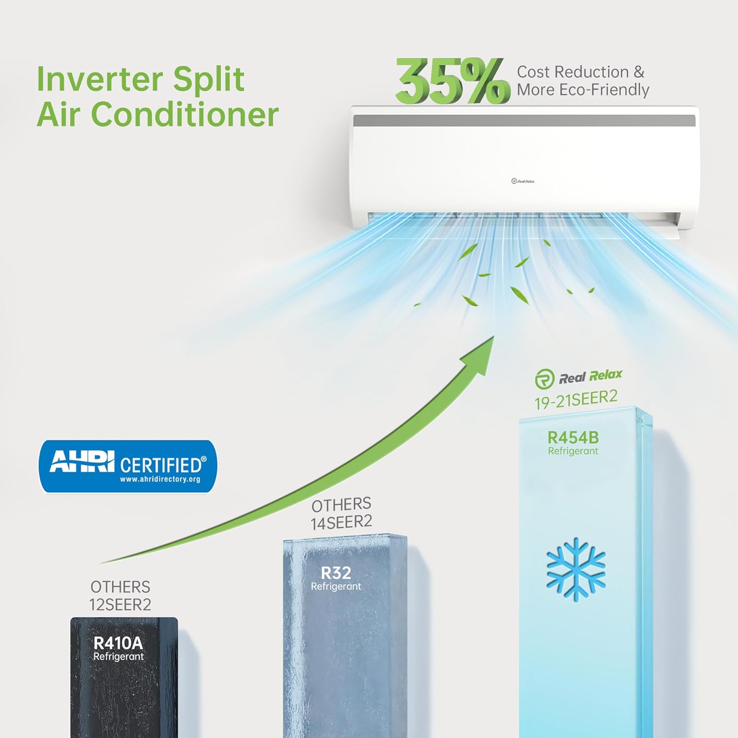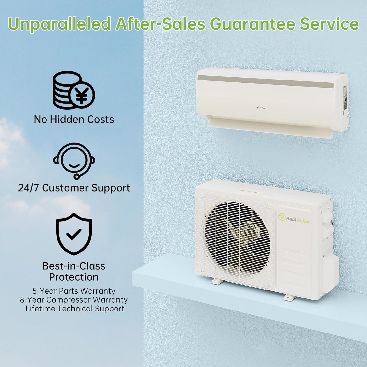 Hassle-Free Installation with Guidance: Comes with mini-split unit, mounting kit, pre-charged R454B refrigerant, manual & assembly videos (DIY available). Note: Install after 2 packages received, keep upright for 24h; licensed HVAC technician installation recommended.