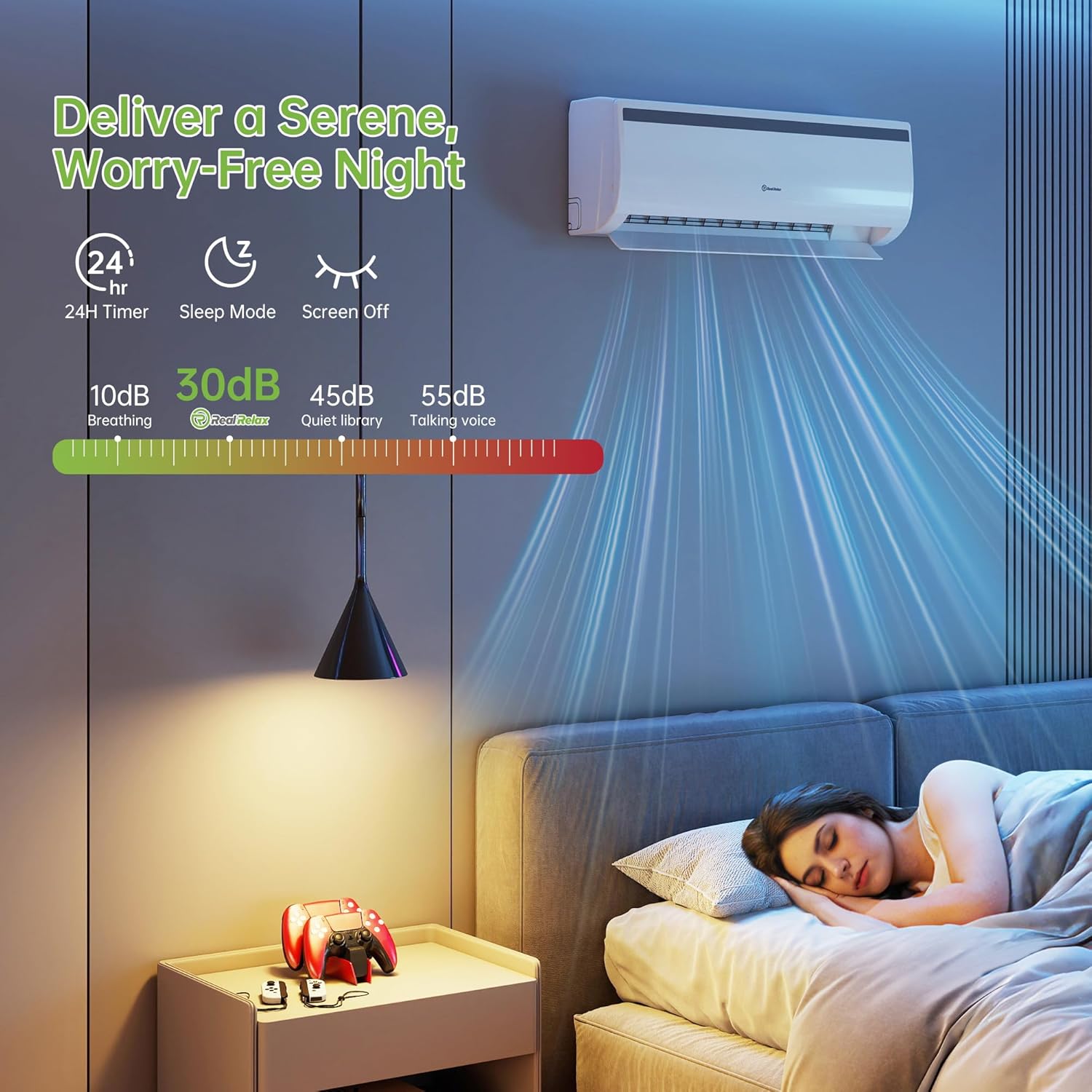 Quiet Operation for a Noise-Free Environment: Operating at as low as 30 decibels in mute mode, this unit also features a dimmable/off LED displayensuring a noise-free and glare-free environment during your rest or sleep. Perfect for homes, gyms, garages, offices, and light commercial spaces, it delivers comfortable temperatures without disruptive noise.