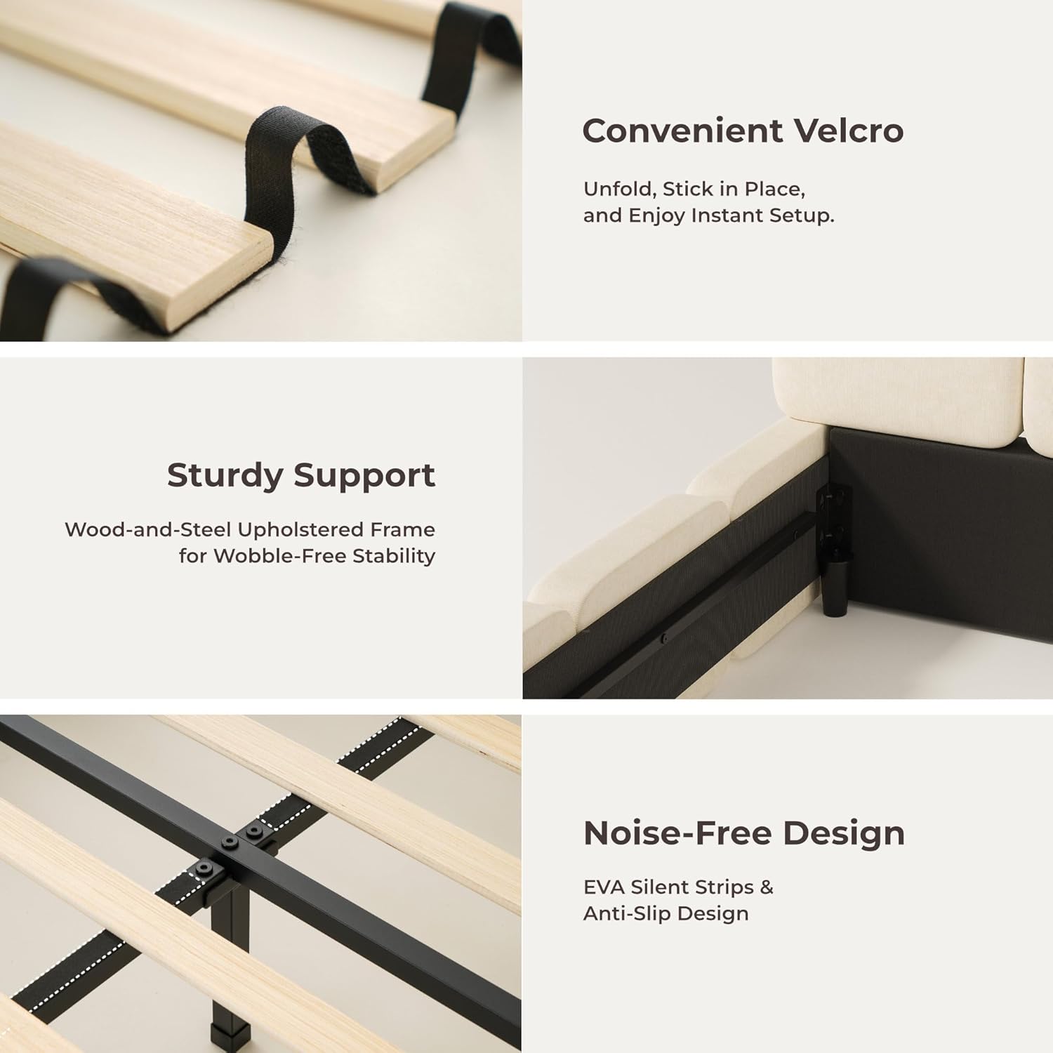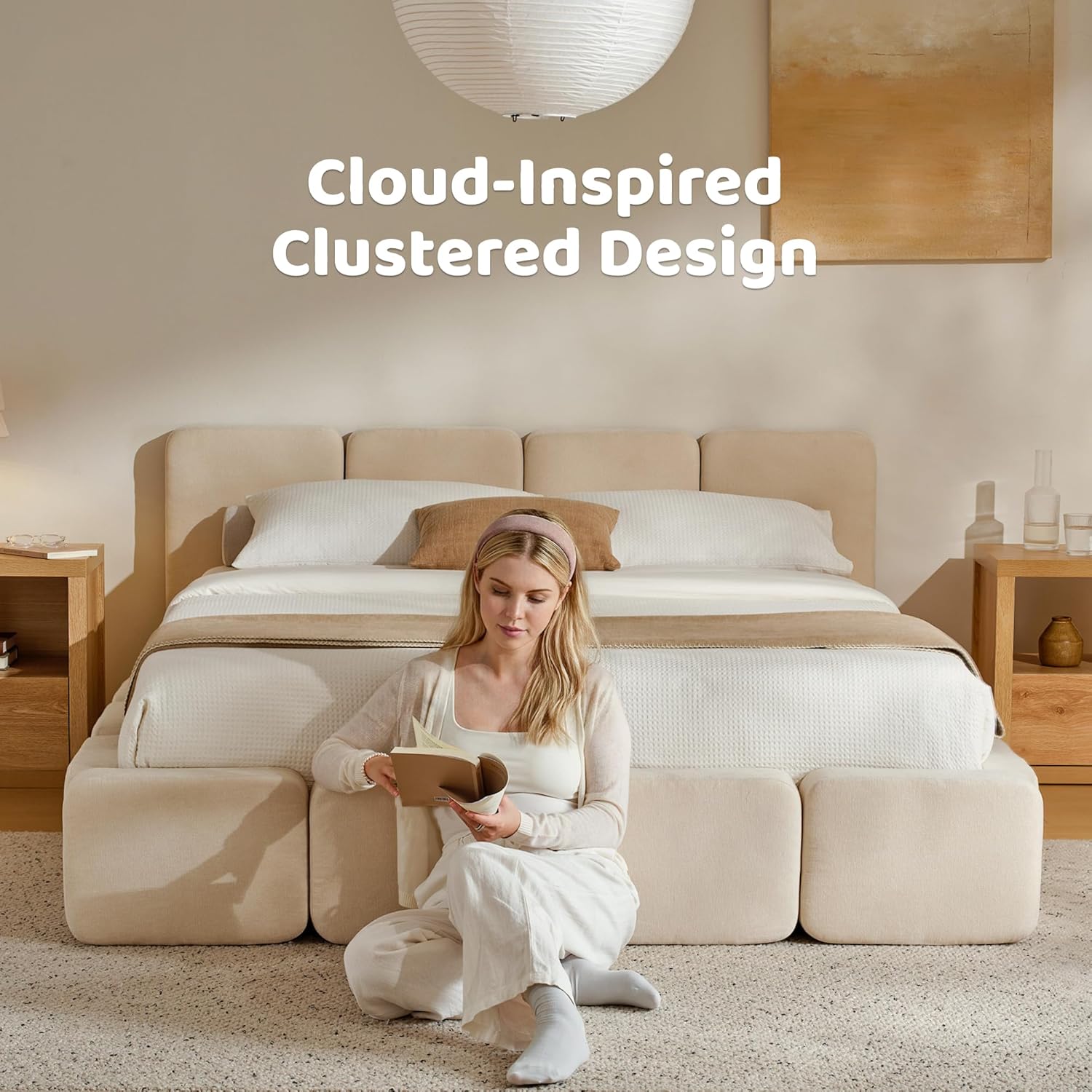 Stable, Quiet, Worry-Free Support: The cloud bed frame features a solid wood internal frame and high-quality slats to provide balanced support for up to 1200 lbs. Engineered for silent, wobble-free nights