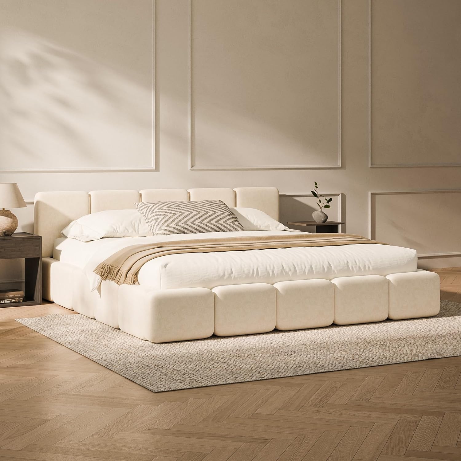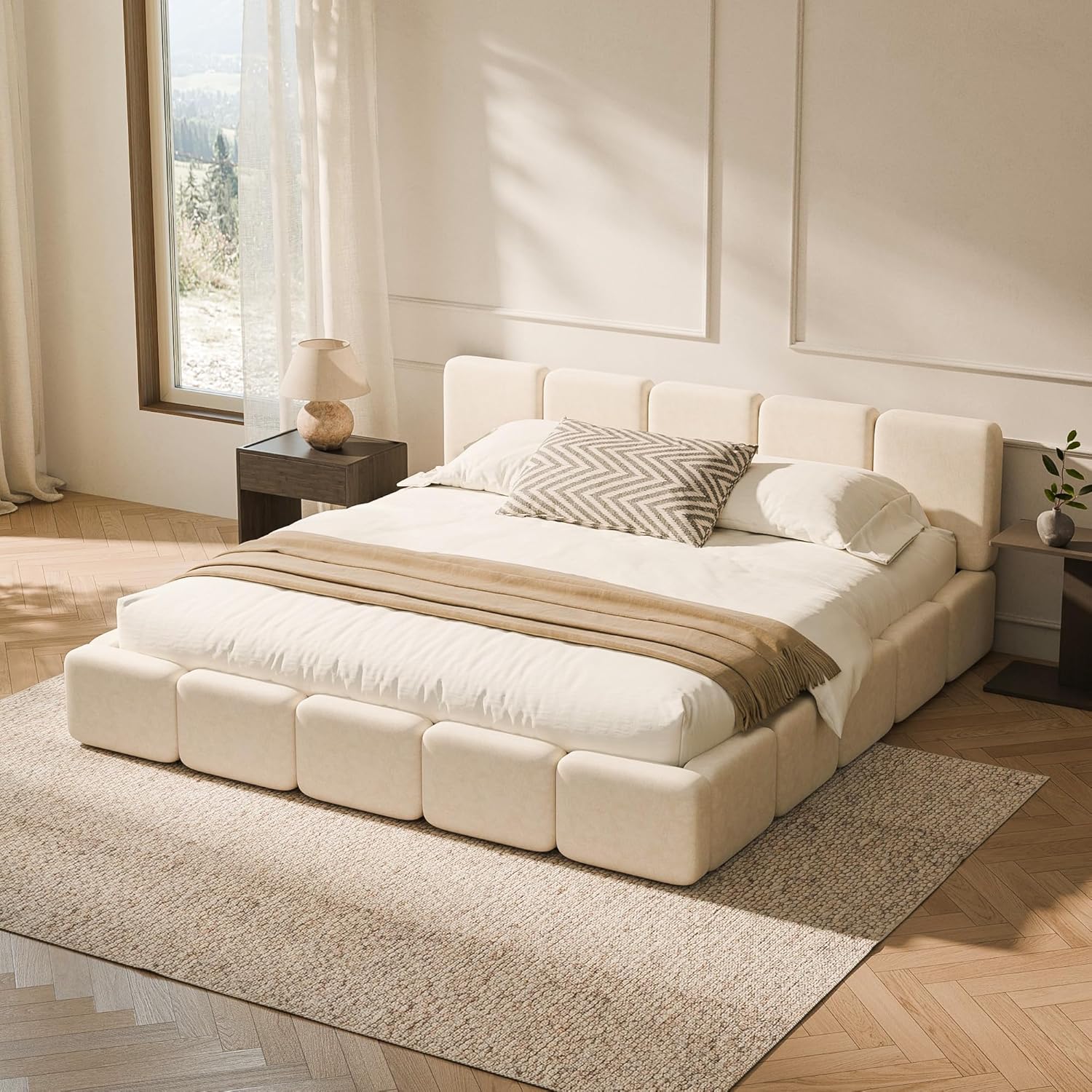Rounded Comfort for Every Edge: Fully padded edges replace sharp corners, giving this bed frame king size a gently contoured, tactile silhouette. Ideal for families, pets, and active households seeking safe, cloud-like softness