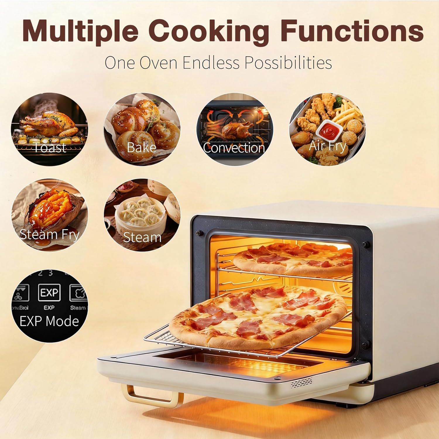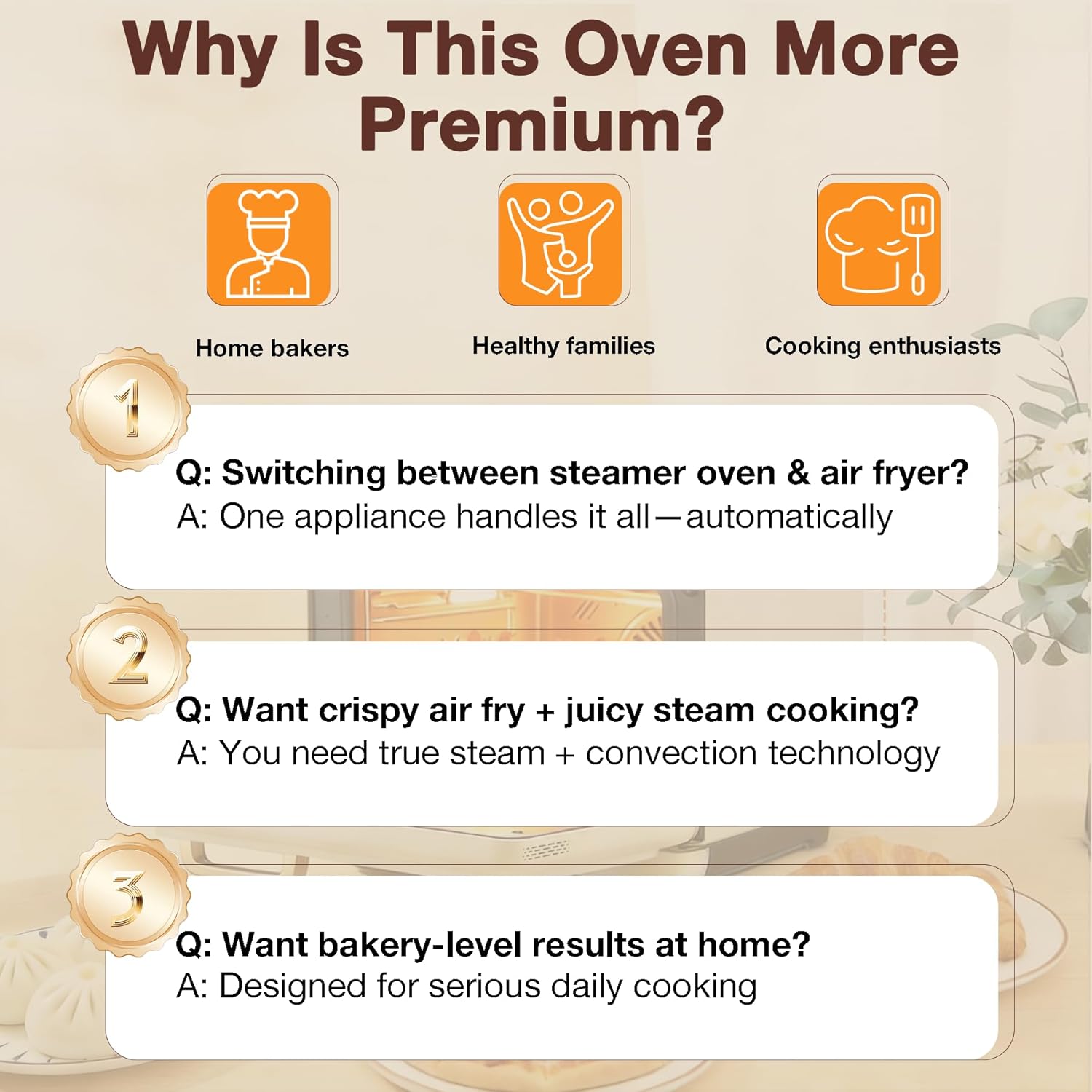 [Best Baking Texture with Multi-Stage Cooking] Features 3-stage cooking programs combining steam + bake + air fry automatically, helping achieve better top browning, juicy interiors, and best crust results for bread and cakes in home baking