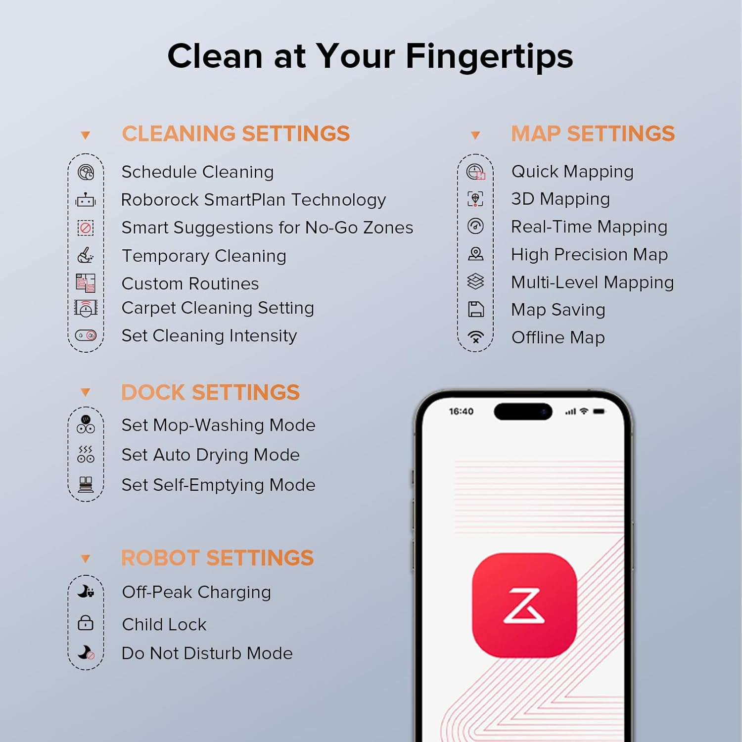 Control at Your Fingertips: Manage all things with the upgraded app. Advanced AI algorithms ensure smarter, stress-free cleaning. Diverse functions, including routines, map details, washing temperatures, drying duration, and maintenance conditions, are easily managed in the app.