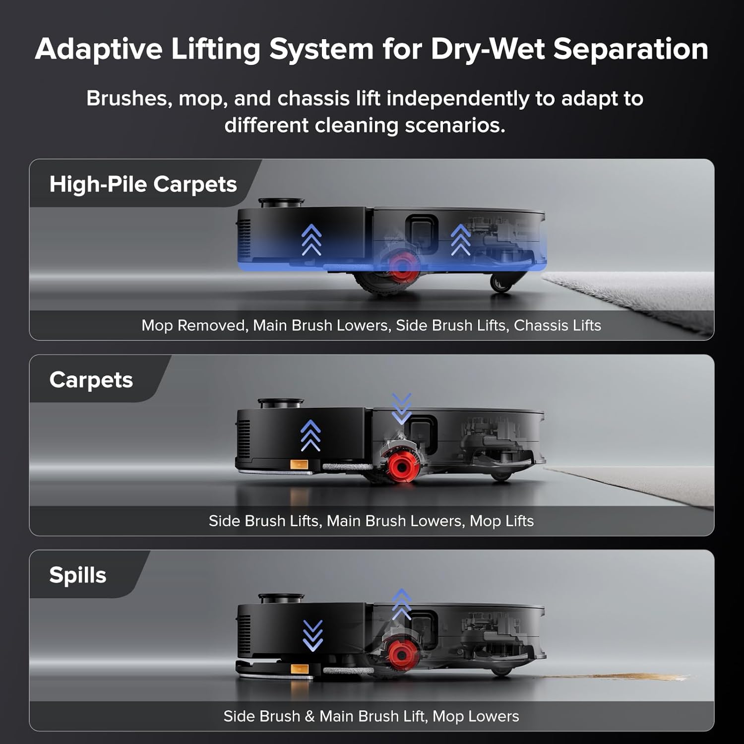 VibraRise 4.0 Self-Detaching Mopping System Effortlessly switch between vacuuming and mopping with automatic mop disassembly and assembly. Clean carpets without moisture while the 18mm Auto-Lifting Brush and Mop adapts to various surfaces for a thorough, ultimate clean.