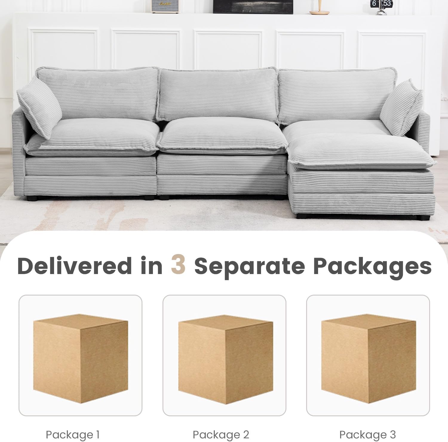 Ultimate Comfort: Experience unmatched comfort with our sofa, made from high-quality foam and soft corduroy fabric. This sectional sofa offers a luxurious feel, and the cozy corduroy provides a plush seating experience, making it perfect for relaxation