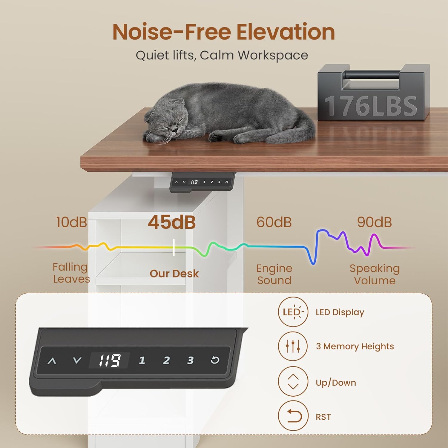 Built to Last with Exceptional StabilityThis adjustable desk combines P2 particle board and premium cold-rolled steel, supporting up to 176 lbs. Rigorously tested for 50,000 full-load lift cycles with operation noise below 45 dB delivering commercial-grade durability for daily use.