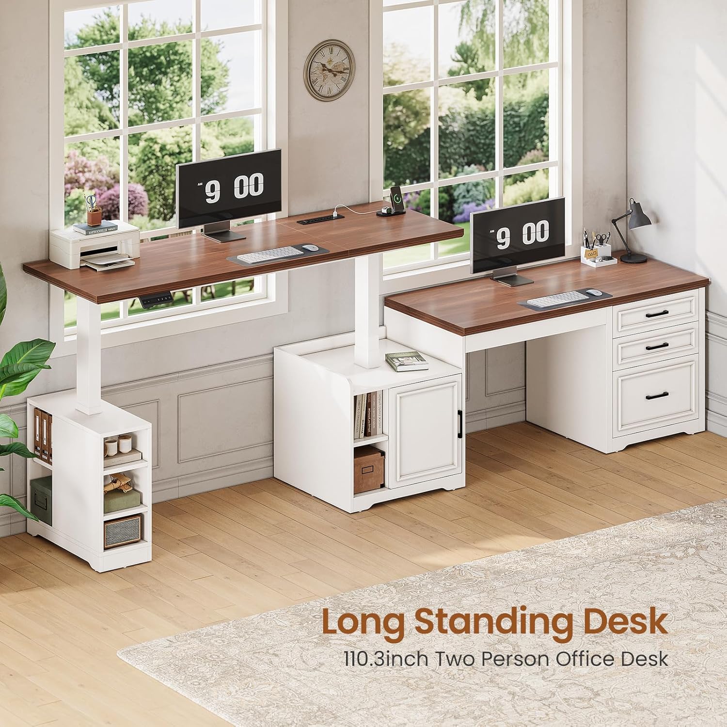 Reversible DeskReversible 67 inch corner desk or 110.3 inch long office desk. l shaped standing desk is perfect for tucking into a corner, it can hold your computer, monitor, keyboard, files, books or CPU stand for home office. Or 110.3 inch two person desk can hold two-person studying or writing no interference.