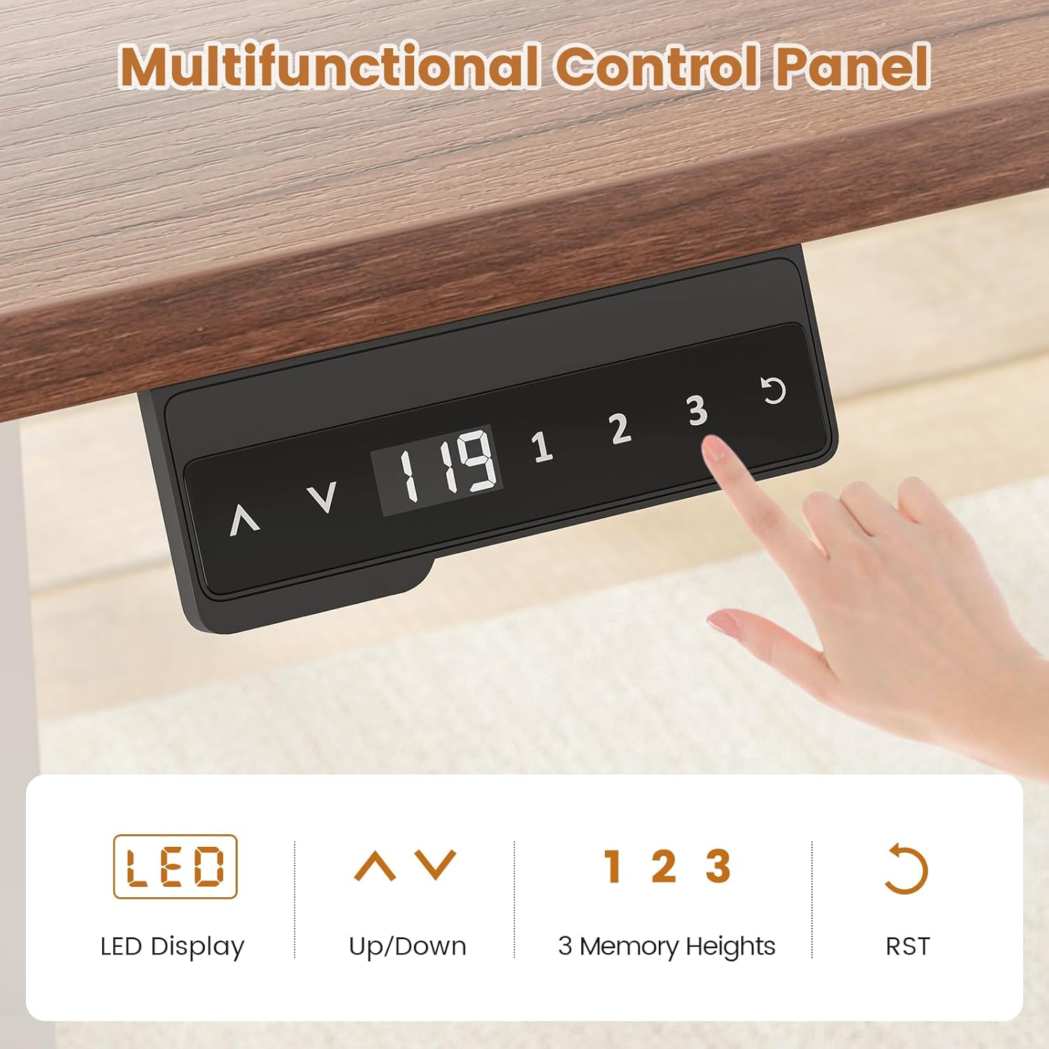 Adjustable Height Standing Desk The standing desk with drawers height adjusts infinitely from 28 to 47 inches, with a memory function to save 3 favorite settings. It helps you find the perfect height for better posture, while the high-quality motor ensures durability, quiet operation, and a longer lifespan.