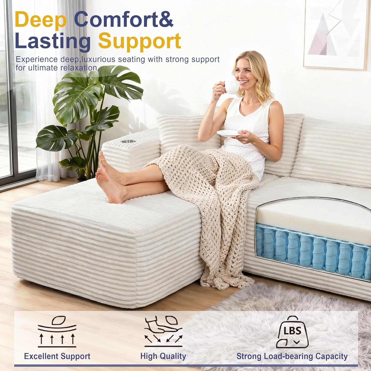 • Boneless Couches for Living Room,Modular Sectional Sofa with 2 Cup Holders,Memory Foam Cloud Couch with L Shaped Oversized Chaise,No Assembly Needed Plush Corduroy Sofa