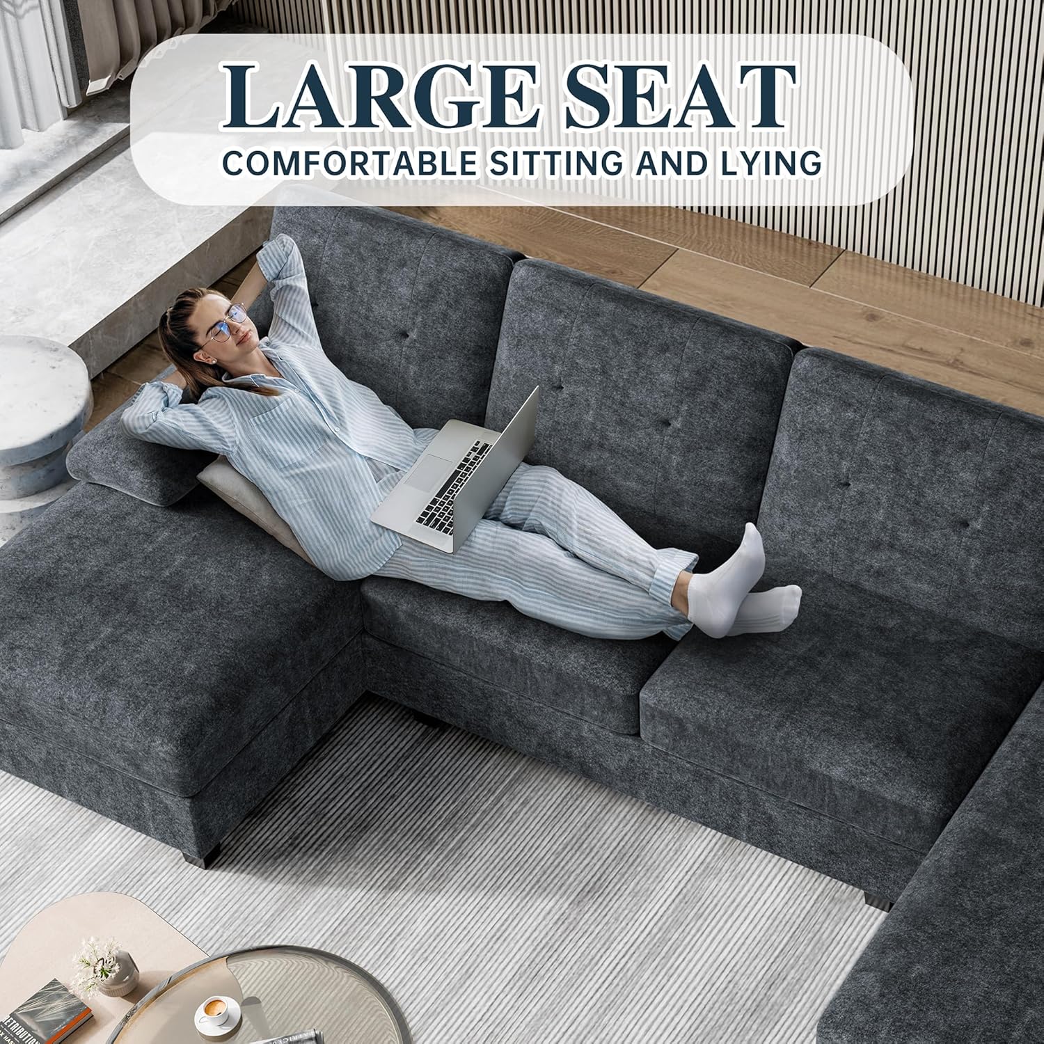 U-Shaped Sectional Sofa: This versatile sectional couch for living room is ideal living room furniture, creating an inviting, intimate space perfect for family time or social gatherings. It effortlessly doubles as a cozy corner or stylish room divider, blending functionality and comforttruly a standout sectional sofa for living room