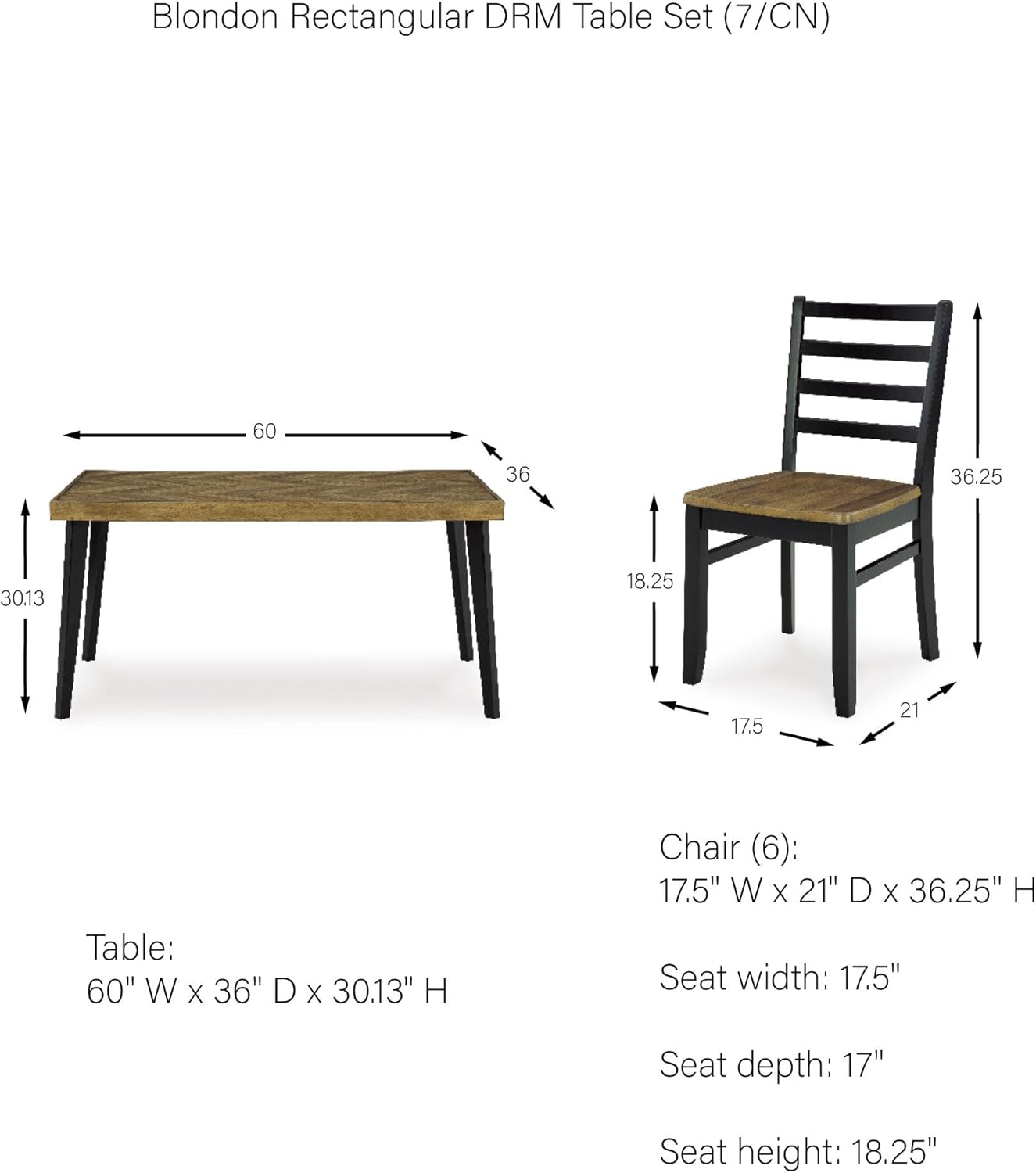DINING TABLE AND CHAIR SET: Transform your dining area with this 7-piece table set. The tabletop's chevron pattern adds a stylish touch, while ladderback chairs complement the overall design