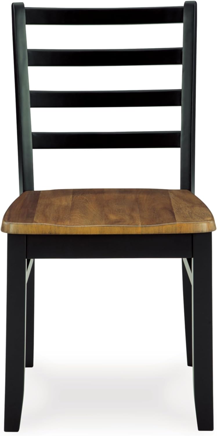QUALITY CRAFTED: Table made with rubberwood solids, acacia veneer and MDF substrates. Inlay tabletop with plank effect in chevron pattern; black tapered legs. Black chair frame made with solid wood
