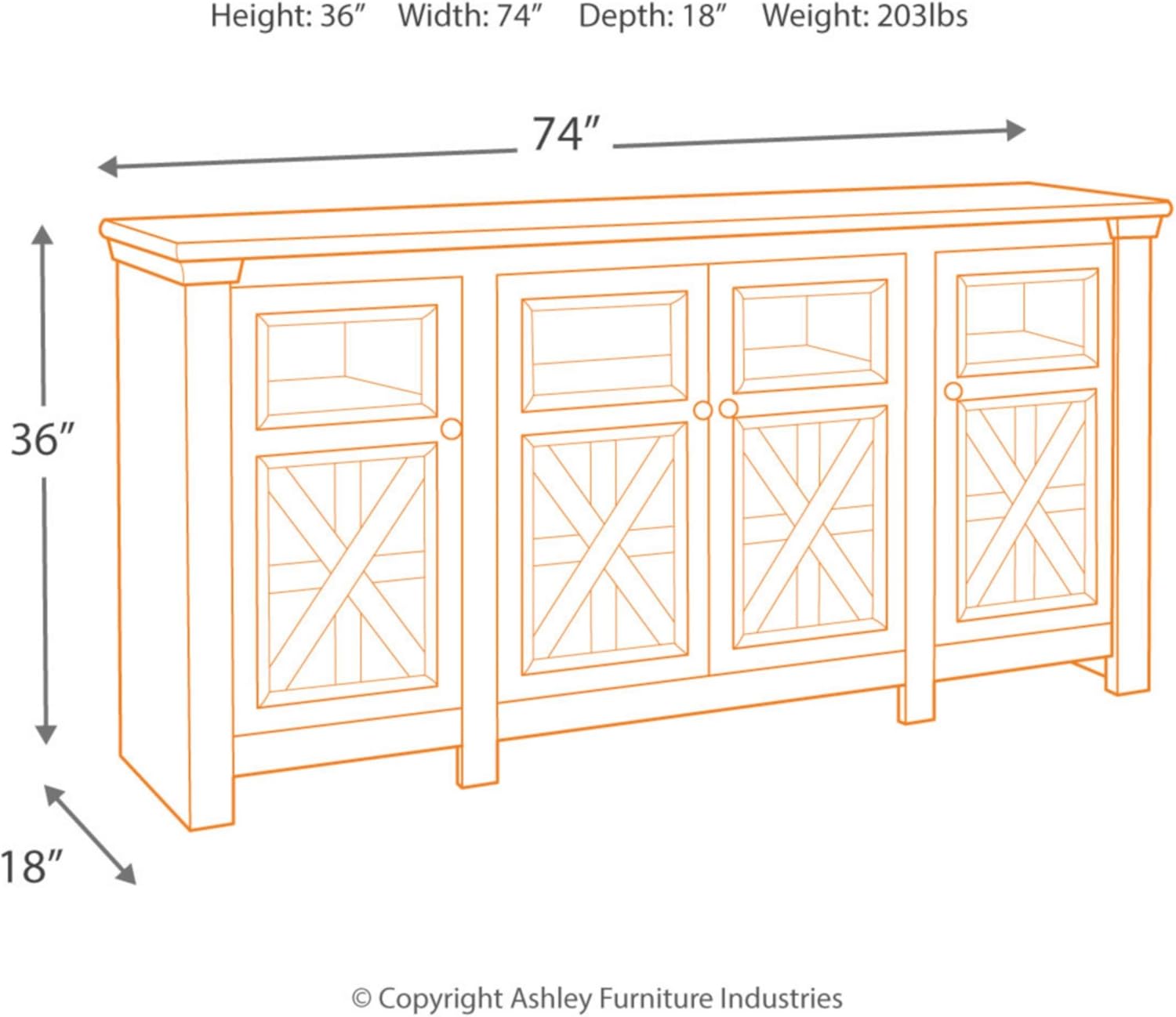 GREAT FOR FLAT SCREENS: Entertainment center is designed with 3 cabinets, 6 adjustable shelves and cutouts for wire management. Unit measures 74" W x 18" D x 36" H