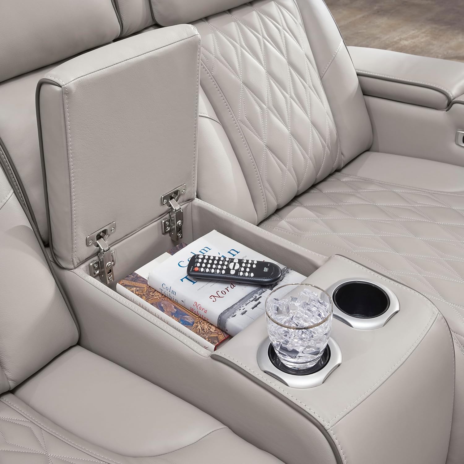 MODERN FEATURES: Lounge in comfort with the air massage system, heated seats and adjustable headrests. This sofa Includes a center console with 2 cup holders and hidden storage