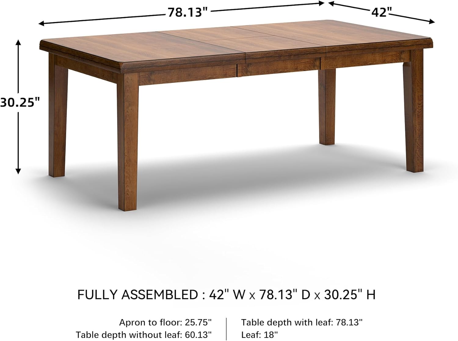 BUTTERFLY EXTENSION: Easily change up your table to meet your needs. Measures 42" W x 78" D x 30" H fully extended and is 60" D without extension. Seats up to 6 people