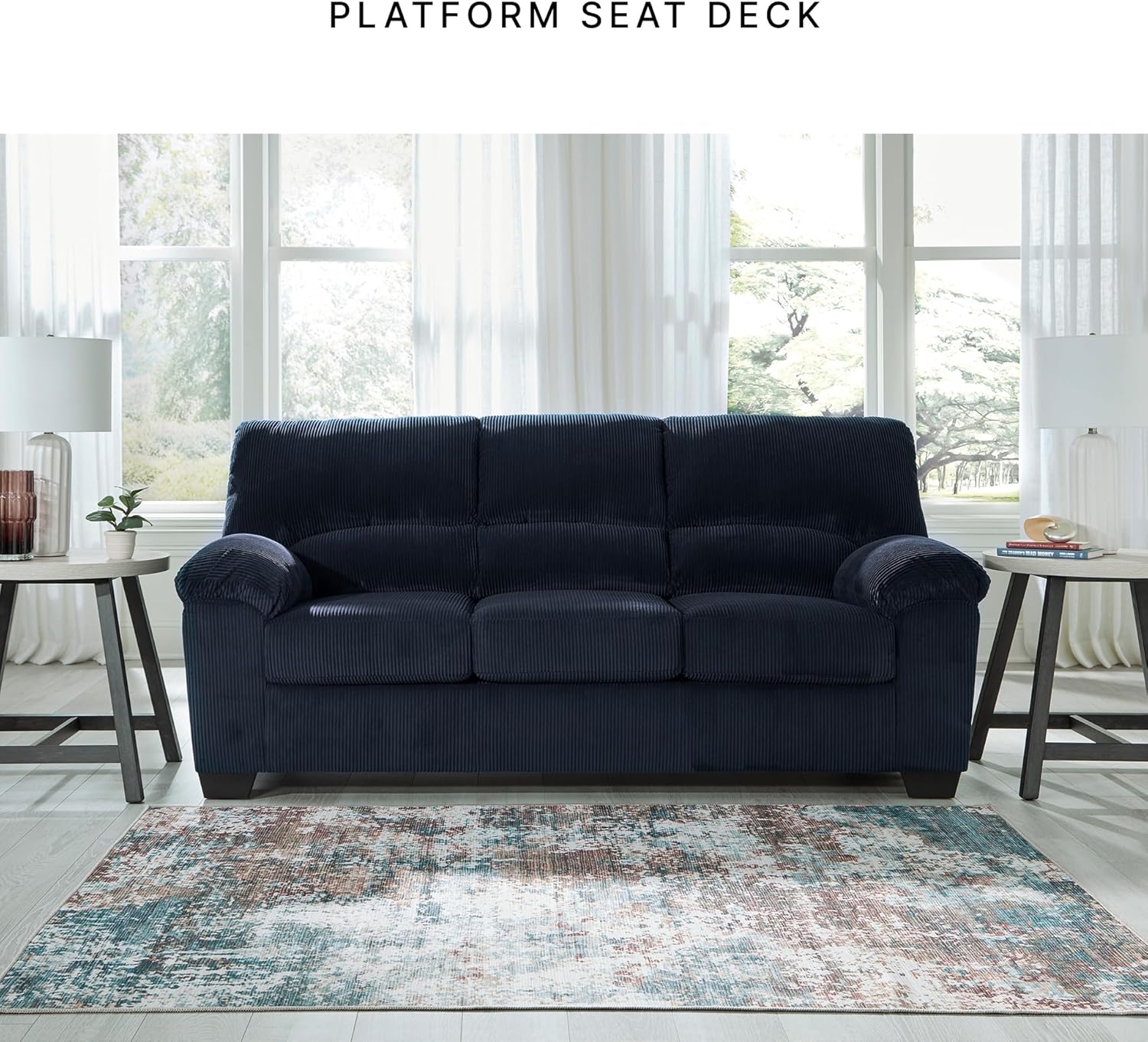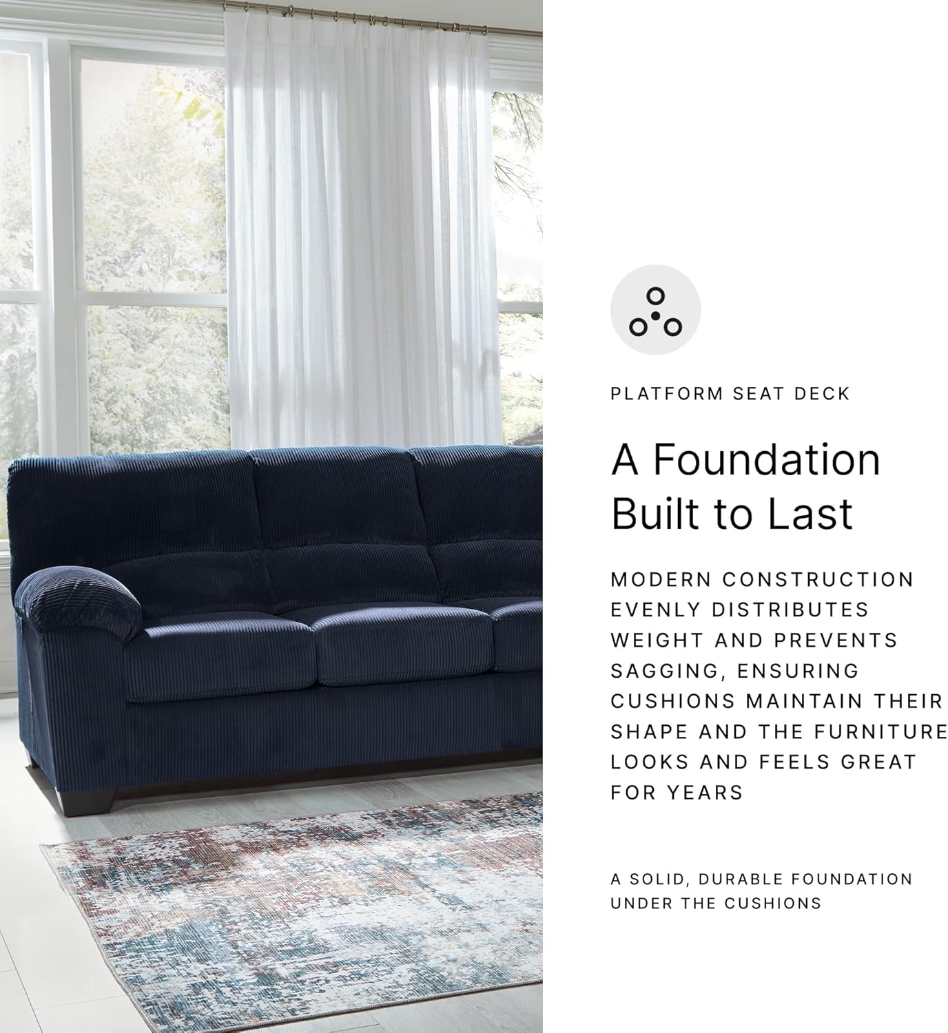 CONTEMPORARY SOFA: This couch is a cozy interpretation of casual contemporary style. Its super-soft corduroy makes curling up with a book or your favorite show that much more comfortable